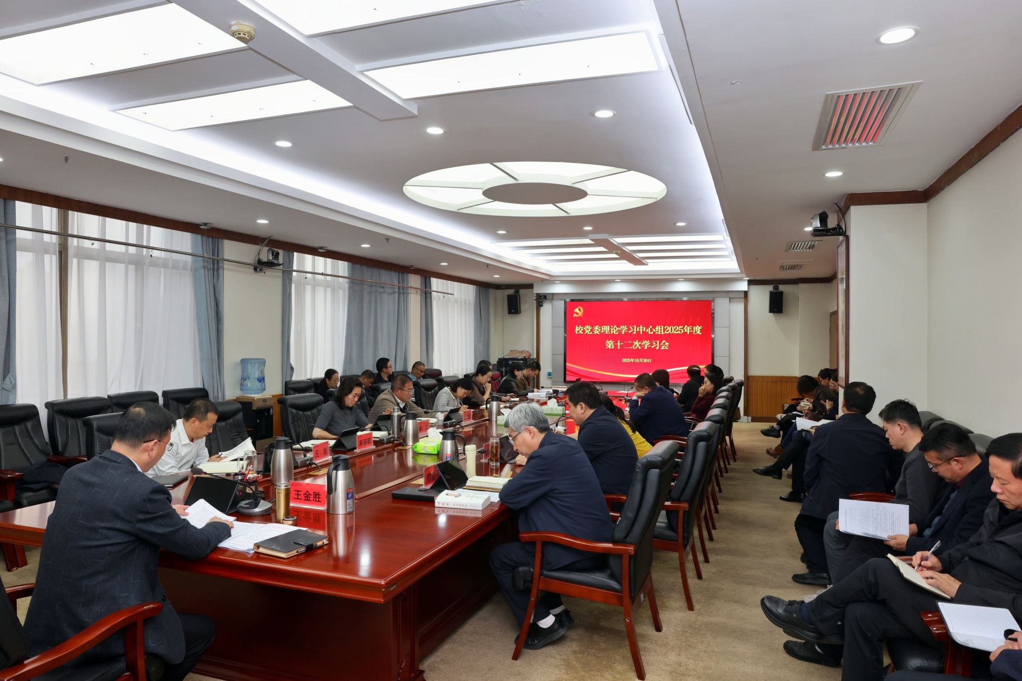 10月30日下午,我校召開黨委理論學(xué)習(xí)中心組學(xué)習(xí)會(huì),專題學(xué)習(xí)貫徹黨的二十屆四中全會(huì)精神。學(xué)習(xí)會(huì)由黨委書記王金勝主持,中心組成員參加,黨(校)辦、各二級(jí)黨組織負(fù)責(zé)人及機(jī)關(guān)第一黨總支宣傳統(tǒng)戰(zhàn)黨支部全體黨員列席。王金勝結(jié)合《中共中央關(guān)于制定國民經(jīng)濟(jì)和社會(huì)發(fā)展第十五個(gè)五年規(guī)劃的建議》(以下簡稱《建議》)內(nèi)容,從整體布局、科技創(chuàng)新、就業(yè)與民生等方面分享了學(xué)習(xí)體會(huì)。他指出,《建議》從加強(qiáng)原始創(chuàng)新和關(guān)鍵核心技術(shù)攻關(guān)、...