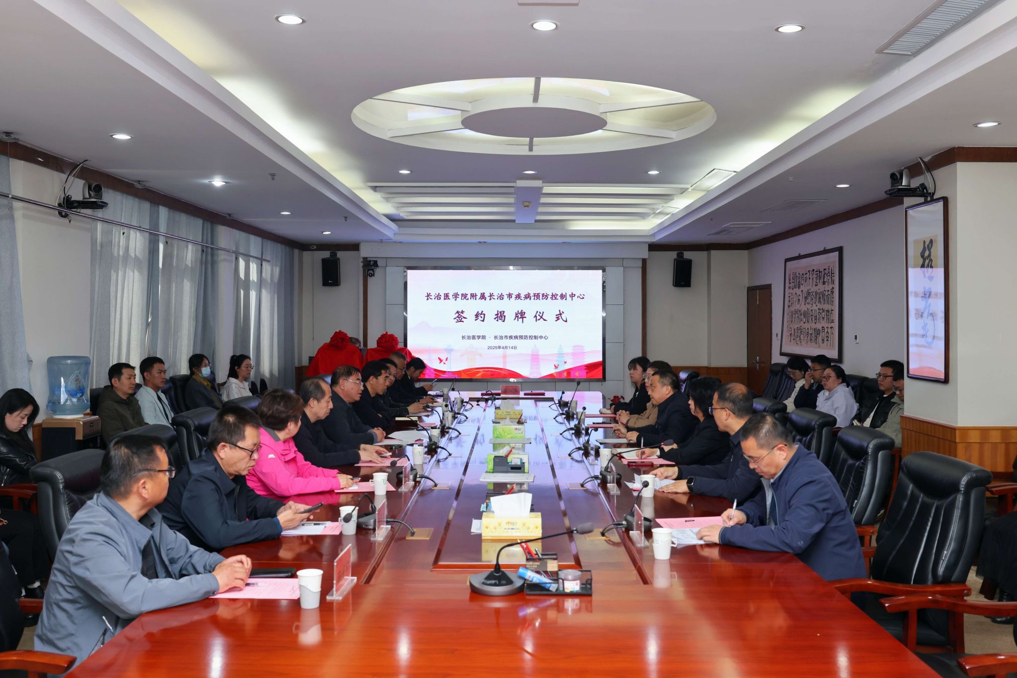 長(zhǎng)治醫(yī)學(xué)院附屬長(zhǎng)治市疾病預(yù)防控制中心、長(zhǎng)治市預(yù)防醫(yī)學(xué)研究院簽約揭牌儀式在我校舉行4月14日下午,長(zhǎng)治醫(yī)學(xué)院附屬長(zhǎng)治市疾病預(yù)防控制中心、長(zhǎng)治市預(yù)防醫(yī)學(xué)研究院簽約揭牌儀式在我校舉行。我校黨委副書記、校長(zhǎng)王旭,黨委常委、副校長(zhǎng)來麗娜;長(zhǎng)治市衛(wèi)生健康委員會(huì)副主任、市疾控局局長(zhǎng)崔旭斌,長(zhǎng)治市疾病預(yù)防控制中心黨委書記、主任原超普出席簽約揭牌儀式。相關(guān)縣區(qū)疾病預(yù)防控制中心領(lǐng)導(dǎo),以及長(zhǎng)治市疾病預(yù)防控制中心和我校相關(guān)人員參加簽約揭牌儀式。...
