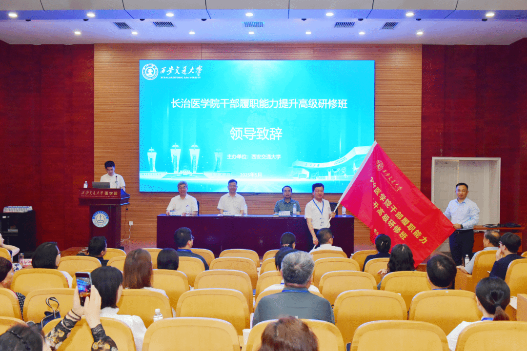 為深入落實(shí)新時(shí)代干部隊(duì)伍建設(shè)要求,扎實(shí)推進(jìn)“干部履職能力提升年”專項(xiàng)行動(dòng),持續(xù)提升干部政治素質(zhì)和履職能力,5月21日至25日,我校在西安交通大學(xué)舉辦2025年第一期干部履職能力提升高級(jí)研修班。校黨委書記王金勝、黨委副書記鄭金平跟訓(xùn),學(xué)校教學(xué)科研管理職能部門、教學(xué)院系、教輔單位50余名處級(jí)干部參加培訓(xùn)。西安交通大學(xué)醫(yī)學(xué)部常務(wù)副主任雷利利,全國(guó)干部教育培訓(xùn)西安交通大學(xué)基地辦公室主任、組織部副部長(zhǎng)高彥出席開班式;西安交通大學(xué)醫(yī)學(xué)部副主任孟曉軍、...