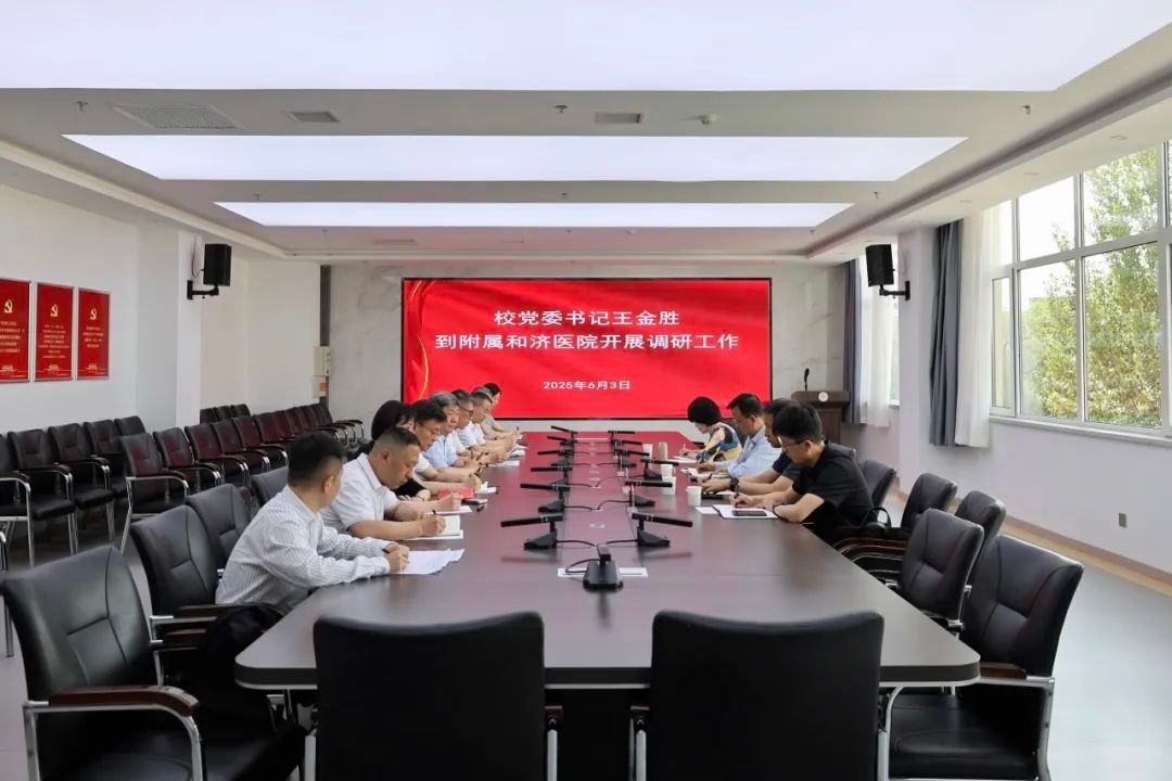 6月3日上午,校黨委書記王金勝深入附屬和濟(jì)醫(yī)院調(diào)研指導(dǎo),醫(yī)院黨政領(lǐng)導(dǎo)班子成員參會。會議由醫(yī)院黨委副書記、院長郝少峰主持。醫(yī)院黨委副書記王培龍對醫(yī)院內(nèi)設(shè)機(jī)構(gòu)設(shè)置及擬調(diào)整情況進(jìn)行匯報。學(xué)校人力資源部部長郭步平就醫(yī)院機(jī)構(gòu)設(shè)置工作提出三點(diǎn)意見。一是要認(rèn)真學(xué)習(xí)領(lǐng)會黨中央、省委有關(guān)機(jī)構(gòu)編制工作最新決策部署,做到學(xué)習(xí)跟進(jìn)、認(rèn)識跟進(jìn)、行動跟進(jìn);二是要開展人事管理業(yè)務(wù)培訓(xùn)與講座,持續(xù)提升做好機(jī)構(gòu)編制工作的能力和水平;三是醫(yī)院領(lǐng)導(dǎo)要充分溝通交流,...