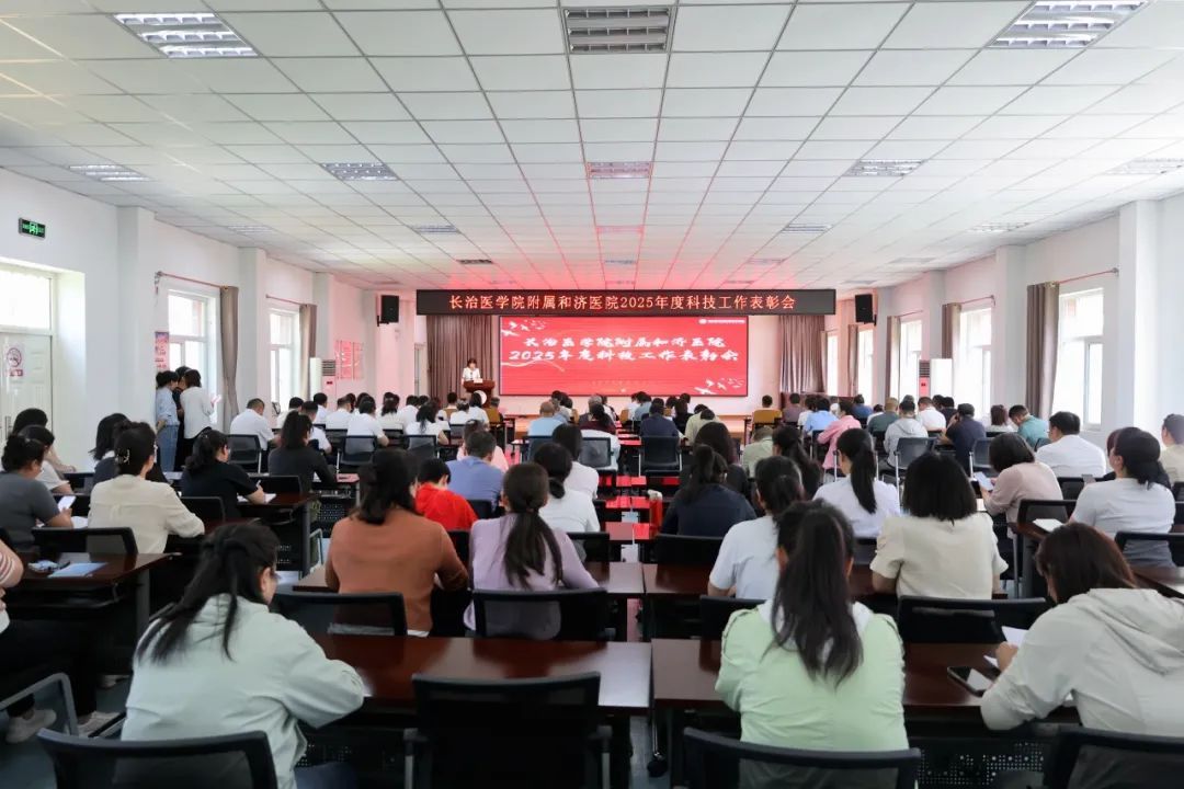 6月3日下午,附屬和濟(jì)醫(yī)院召開2025年度科技工作表彰會。校黨委副書記、校長王旭,長治市科技局黨組書記、局長王海宏,學(xué)校研究生院院長、公共衛(wèi)生與預(yù)防醫(yī)學(xué)系主任楊建洲,學(xué)??茖W(xué)技術(shù)部部長曹文君,長治市科技局農(nóng)業(yè)與基礎(chǔ)研究科科長韓卓出席會議。醫(yī)院領(lǐng)導(dǎo)、各科主任、護(hù)士長、副高職稱及研究生以上人員參會。會議由醫(yī)院副院長牛曉紅主持。醫(yī)院副院長王向東從科研成果情況,完善制度建設(shè)、營造科研氛圍,增加科研投入、完善科研平臺建設(shè),...