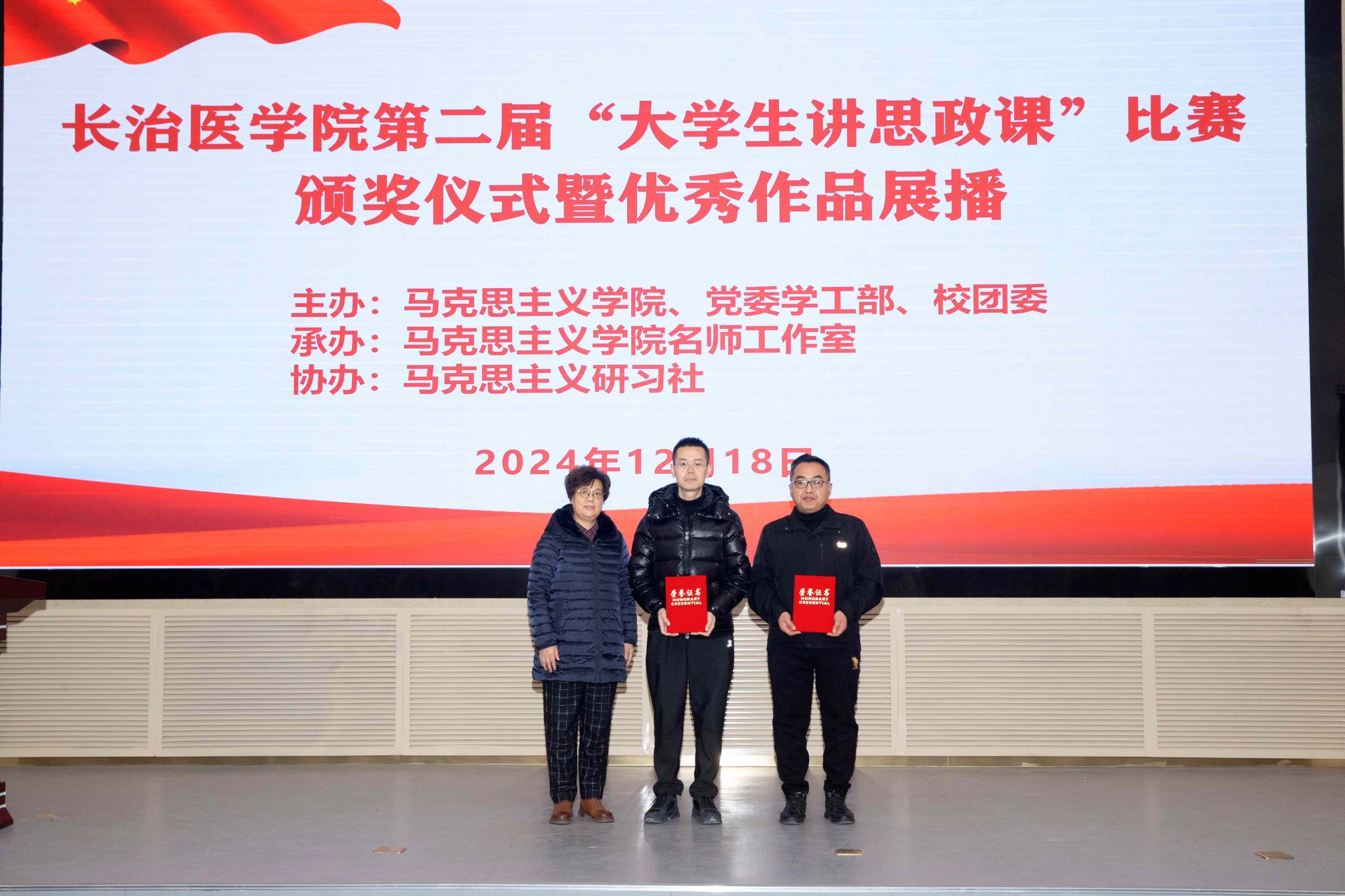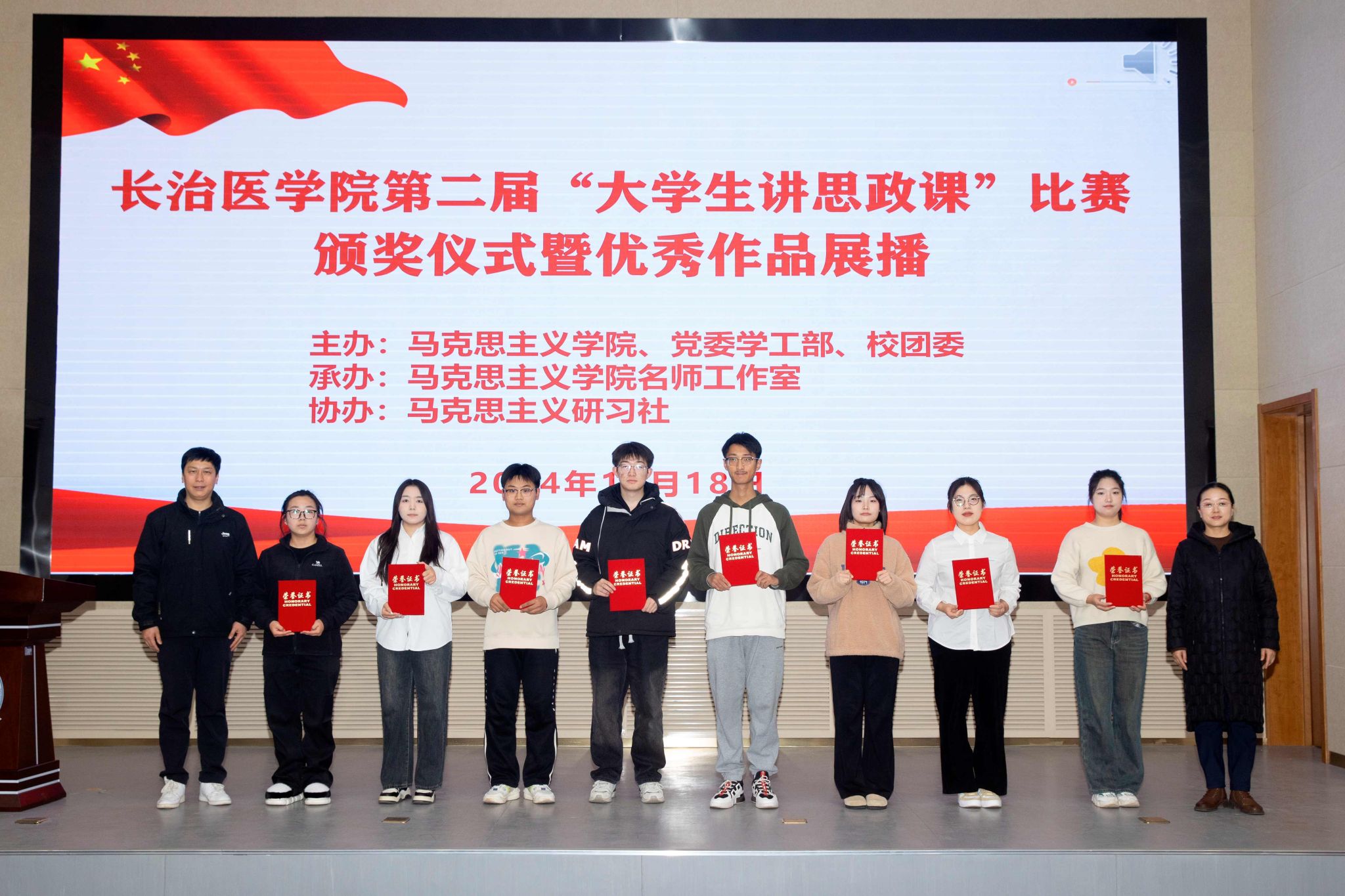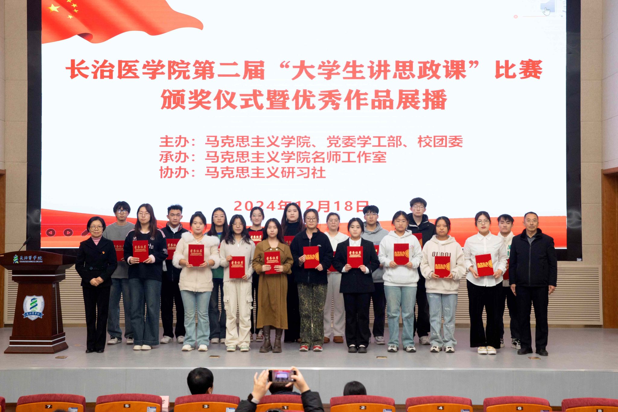 為深入學(xué)習(xí)貫徹落實(shí)黨的二十大精神和黨的二十屆三中全會(huì)精神,貫徹落實(shí)習(xí)近平總書(shū)記關(guān)于思政課建設(shè)的重要指示精神,我校馬克思主義學(xué)院、黨委學(xué)工部、校團(tuán)委聯(lián)合主辦了長(zhǎng)治醫(yī)學(xué)院第二屆“大學(xué)生講思政課”比賽。12月18日上午,該賽事頒獎(jiǎng)儀式暨優(yōu)秀作品展播活動(dòng)在望岳堂舉行,校黨委副書(shū)記張芳萍出席儀式并講話(huà),獲獎(jiǎng)師生代表參加儀式。