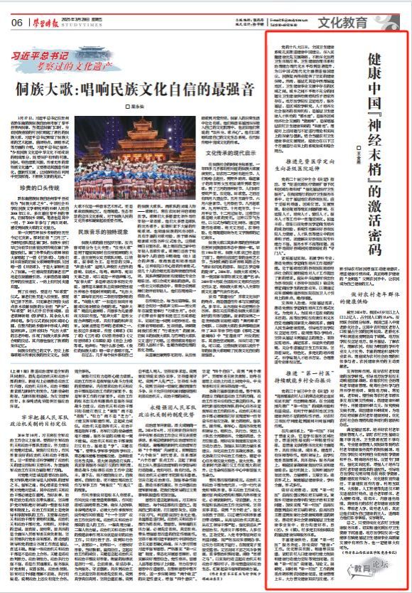 《學(xué)習(xí)時(shí)報(bào)》2025年3月28日 第 6 版刊登我校黨委書(shū)記王金勝教授署名文章《健康中國(guó)“神經(jīng)末梢”的激活密碼》。跟隨小編一起來(lái)看吧!