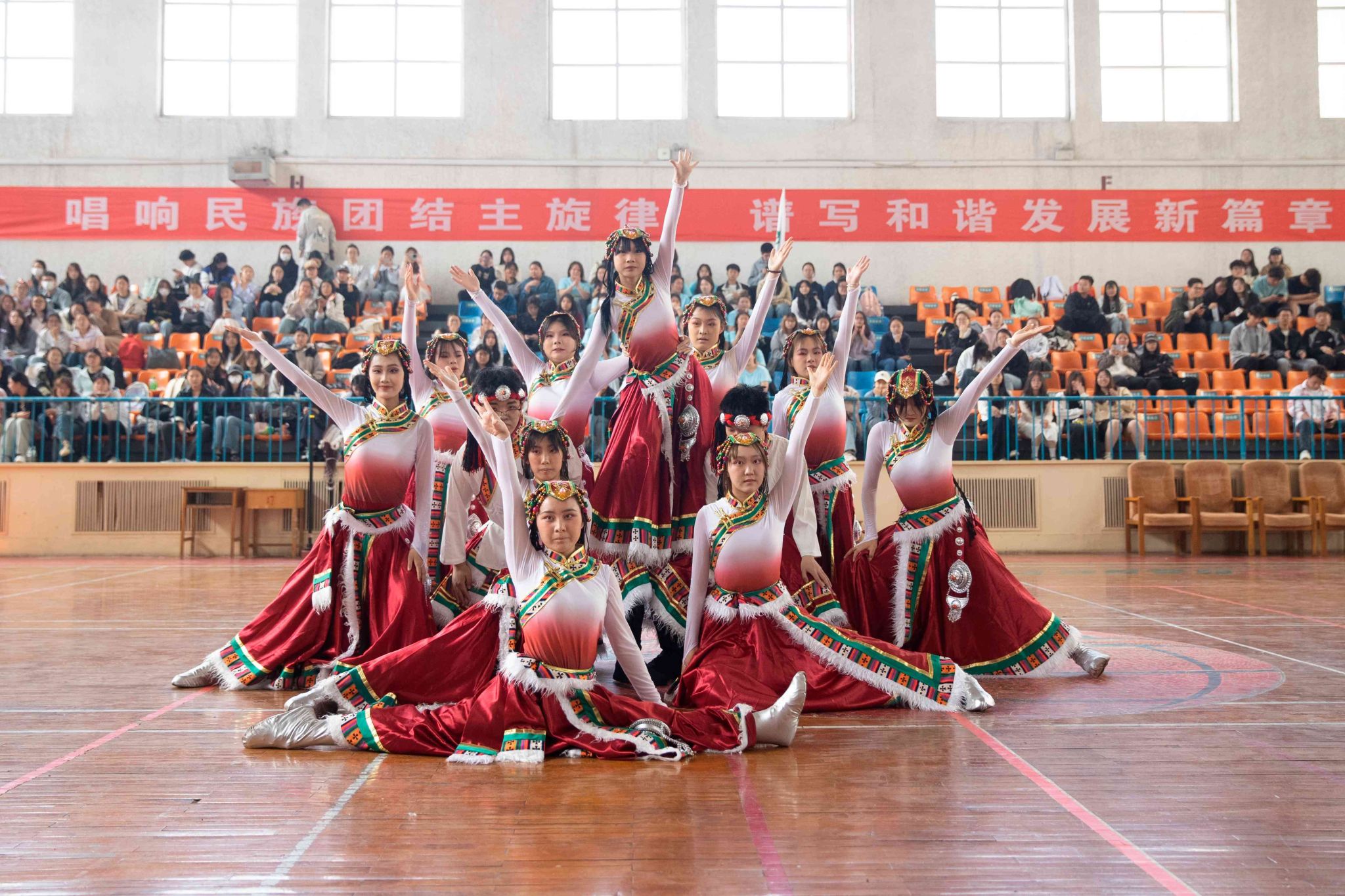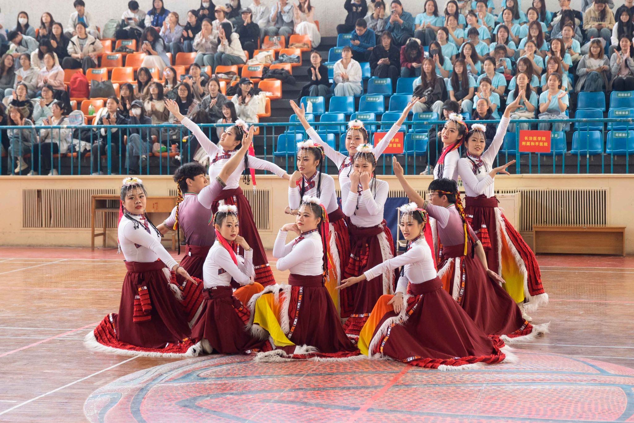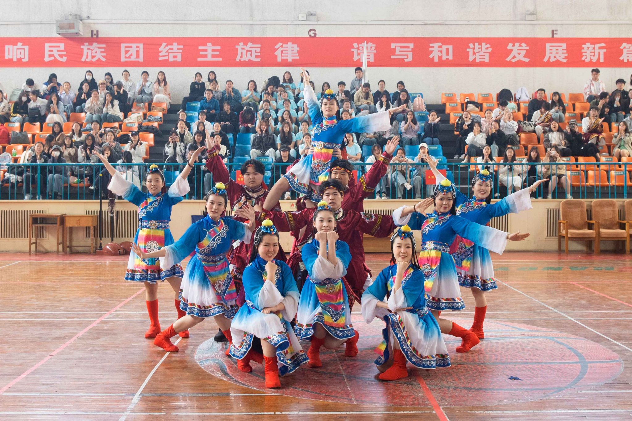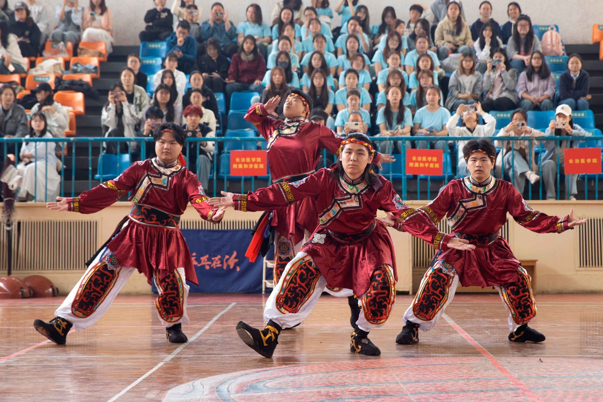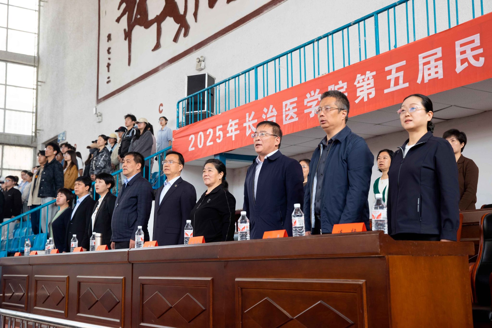 民族健身操是我校民族團結(jié)進步創(chuàng)建工作的生動載體,為深入貫徹落實習(xí)近平總書記關(guān)于加強和改進民族工作的重要思想,以鑄牢中華民族共同體意識為主線,增進各民族學(xué)生交往交流交融,生動展現(xiàn)當代大學(xué)生團結(jié)奮進、朝氣蓬勃的精神風貌,4月19日,由黨委統(tǒng)戰(zhàn)部主辦、公共體育教學(xué)部承辦的長治醫(yī)學(xué)院第五屆民族健身操大賽在文體中心開賽。來自全校17個院系的26支參賽隊伍以民族健身操為媒,將多彩民族文化融入動感韻律之中,為師生帶來一場民族文化與運動之美交相輝映的視聽盛宴。校黨委書記王金勝,長治市委統(tǒng)戰(zhàn)部副部長、民宗局局長趙百勝,長治市委統(tǒng)戰(zhàn)部民宗科科長張勇蒞臨活動現(xiàn)場,共同見證各民族青年學(xué)子在體育競技中增進團結(jié)、深化交流的精彩時刻。