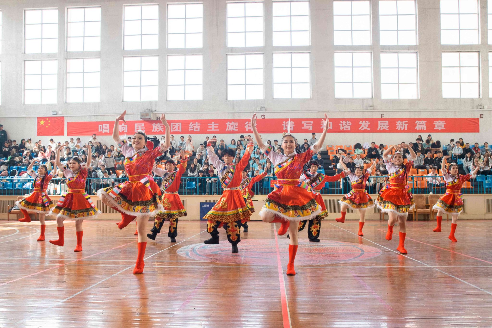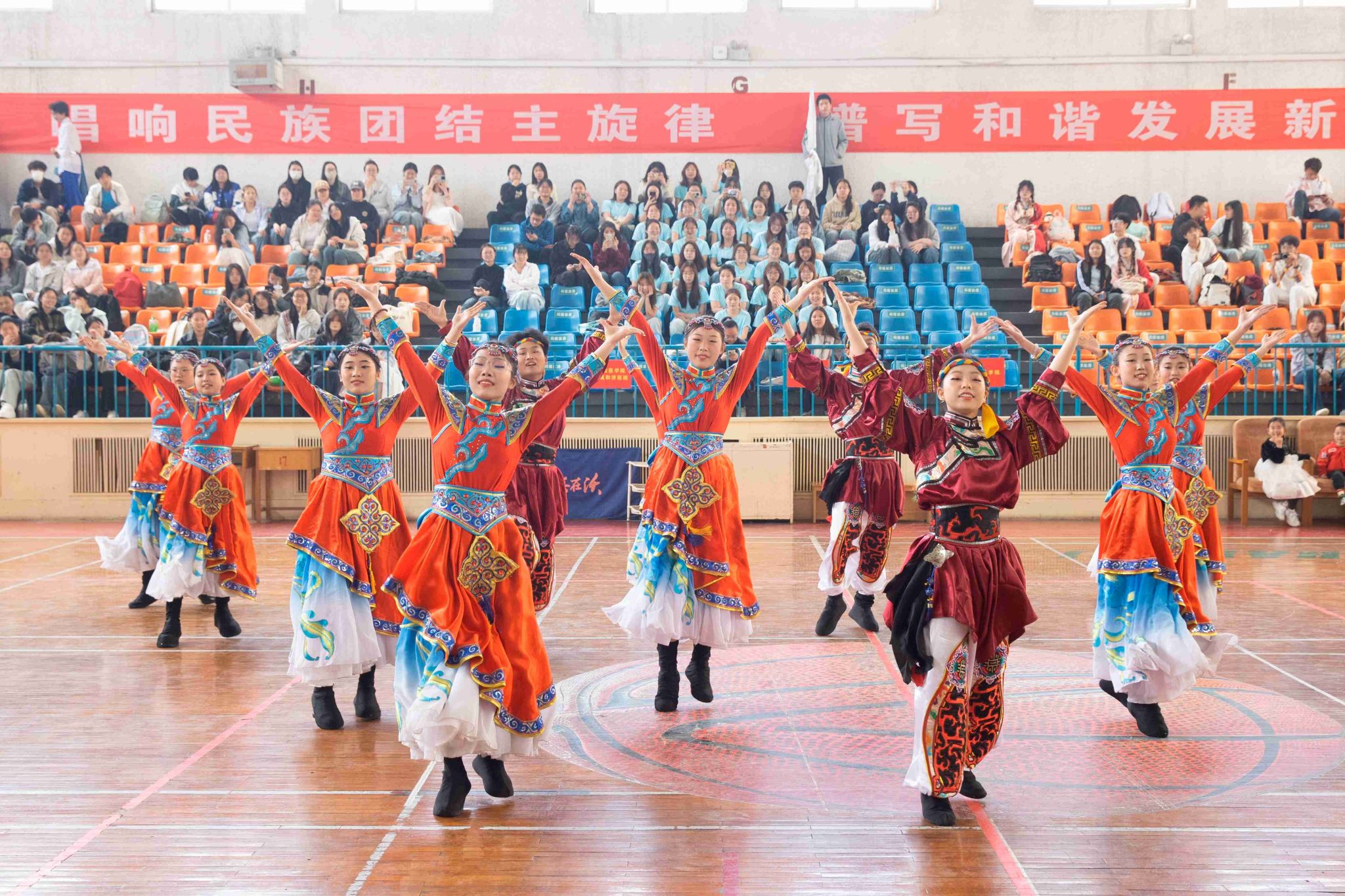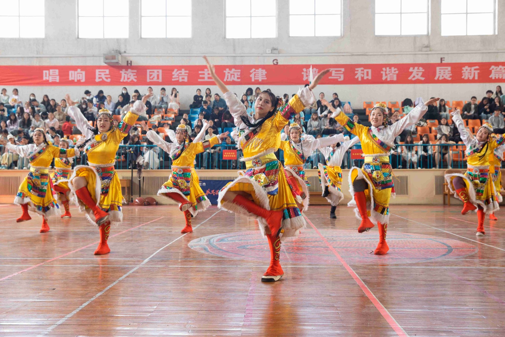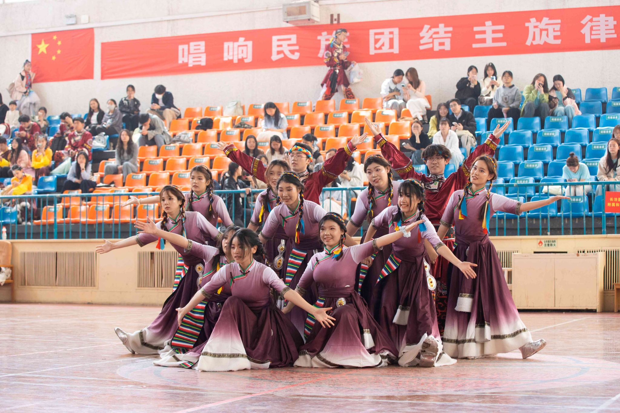民族健身操是我校民族團結(jié)進步創(chuàng)建工作的生動載體,為深入貫徹落實習(xí)近平總書記關(guān)于加強和改進民族工作的重要思想,以鑄牢中華民族共同體意識為主線,增進各民族學(xué)生交往交流交融,生動展現(xiàn)當代大學(xué)生團結(jié)奮進、朝氣蓬勃的精神風貌,4月19日,由黨委統(tǒng)戰(zhàn)部主辦、公共體育教學(xué)部承辦的長治醫(yī)學(xué)院第五屆民族健身操大賽在文體中心開賽。來自全校17個院系的26支參賽隊伍以民族健身操為媒,將多彩民族文化融入動感韻律之中,為師生帶來一場民族文化與運動之美交相輝映的視聽盛宴。校黨委書記王金勝,長治市委統(tǒng)戰(zhàn)部副部長、民宗局局長趙百勝,長治市委統(tǒng)戰(zhàn)部民宗科科長張勇蒞臨活動現(xiàn)場,共同見證各民族青年學(xué)子在體育競技中增進團結(jié)、深化交流的精彩時刻。