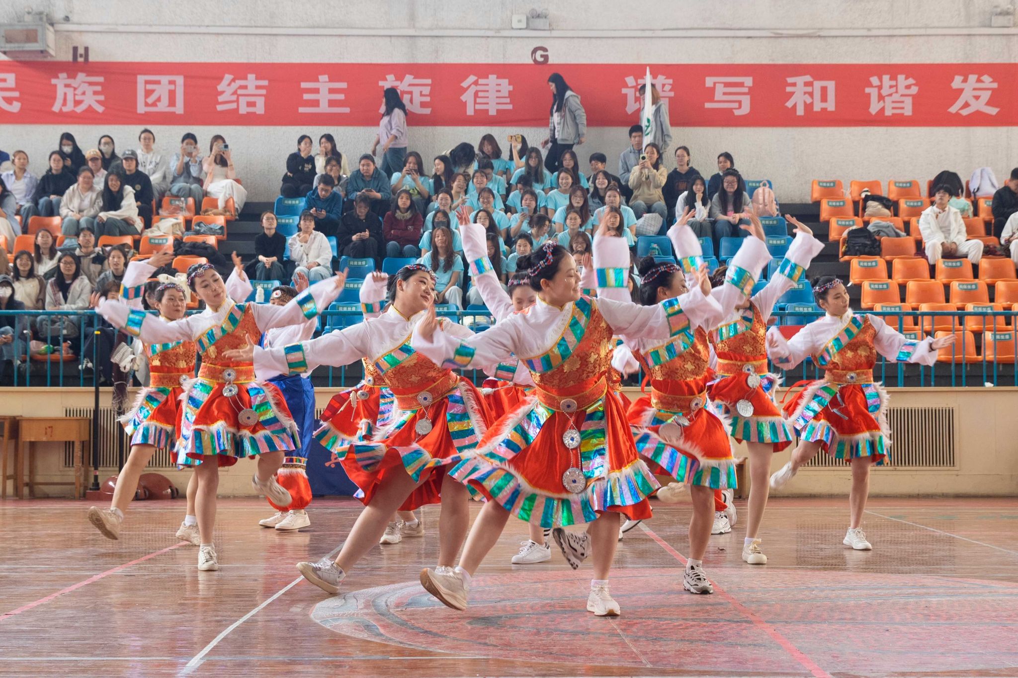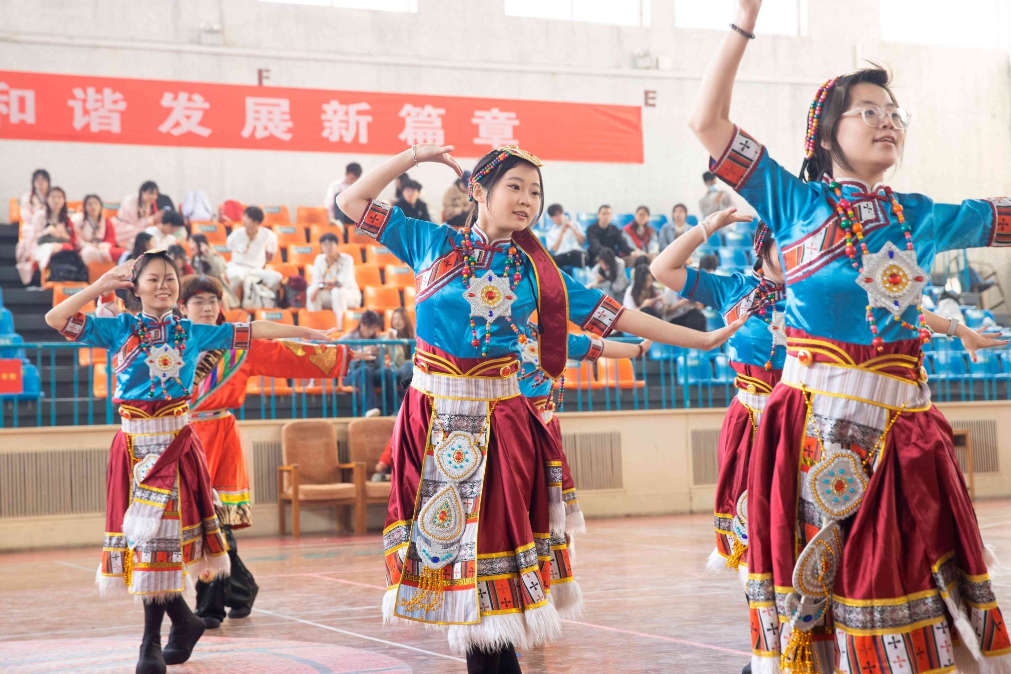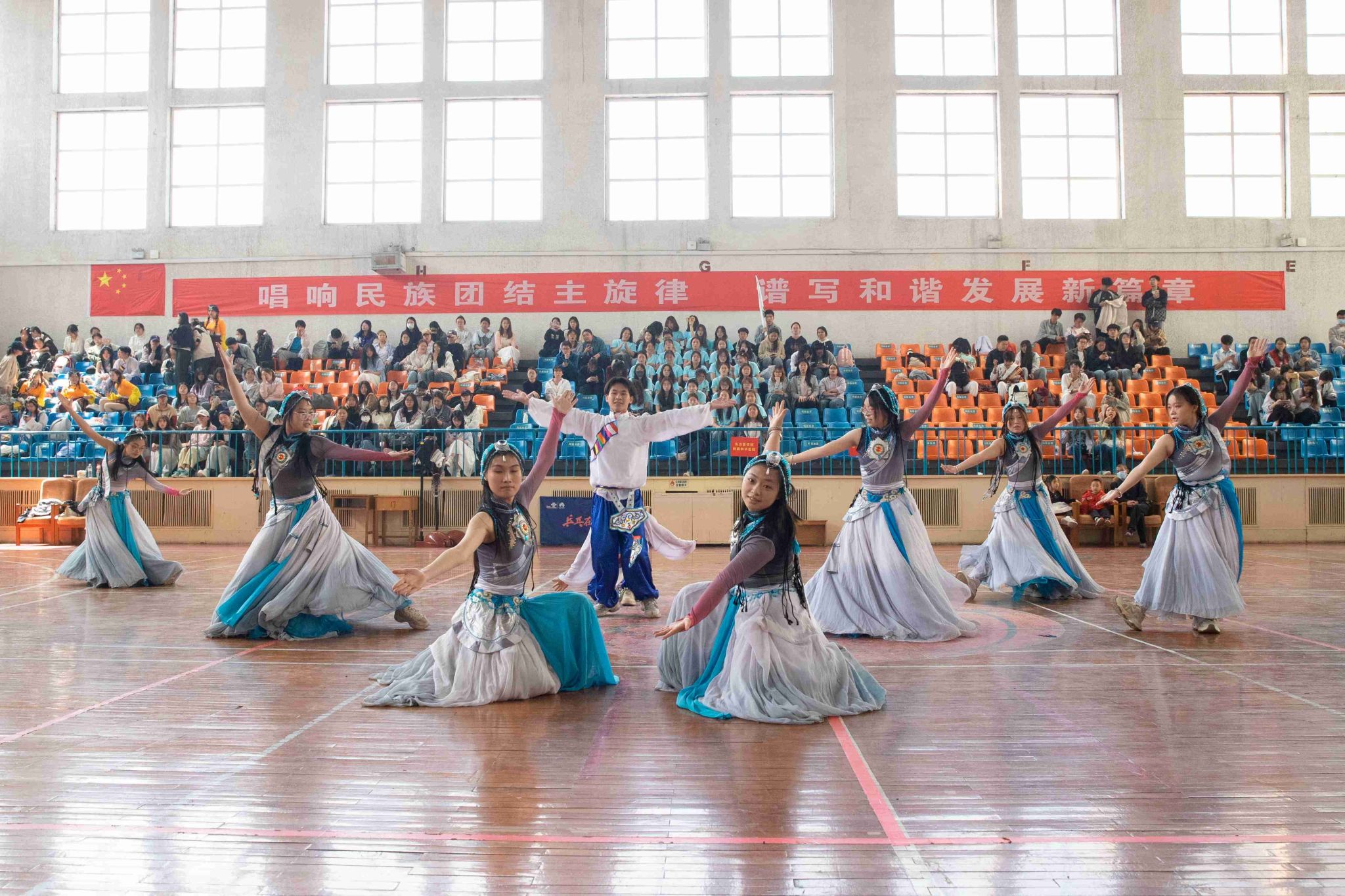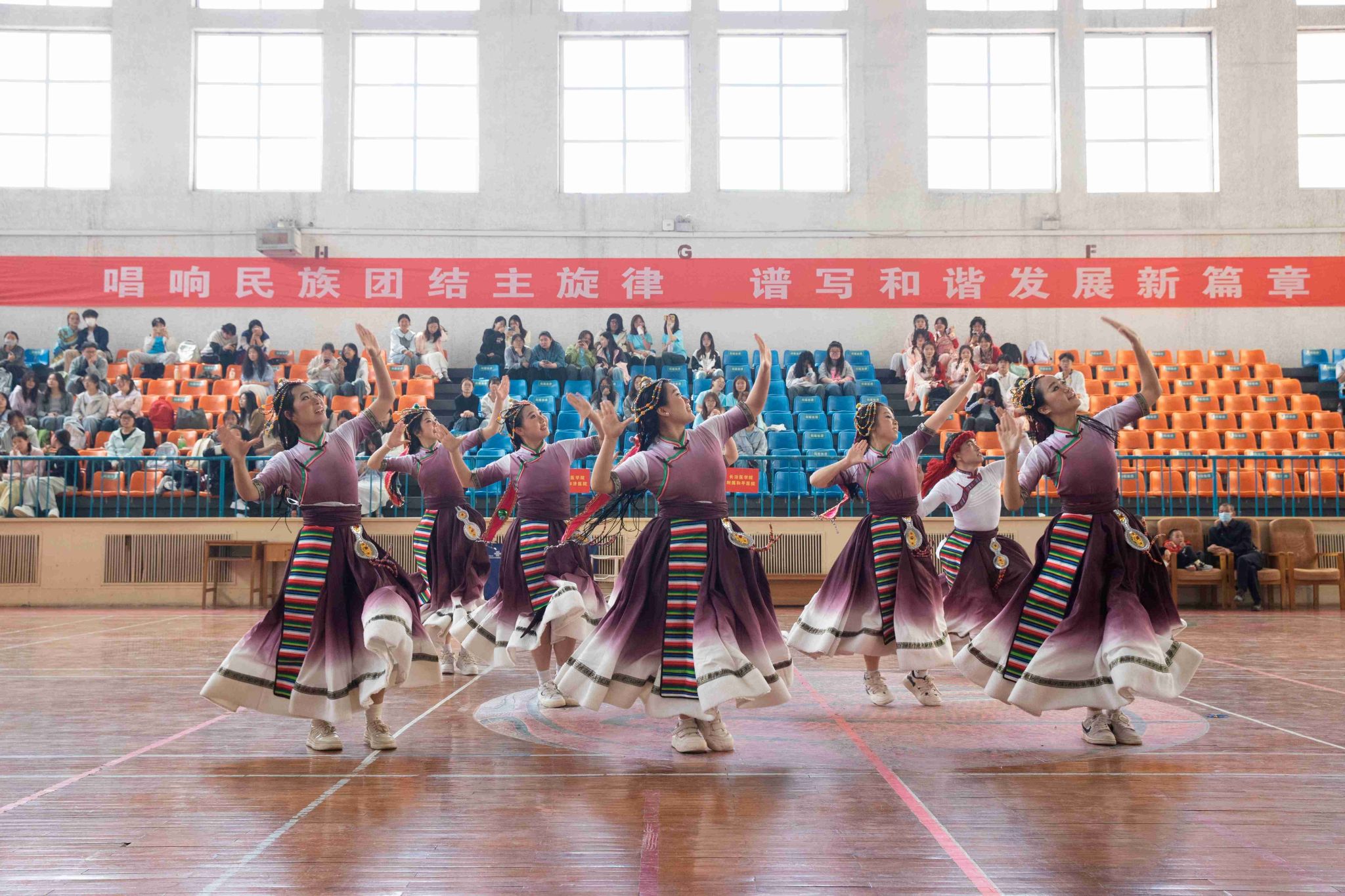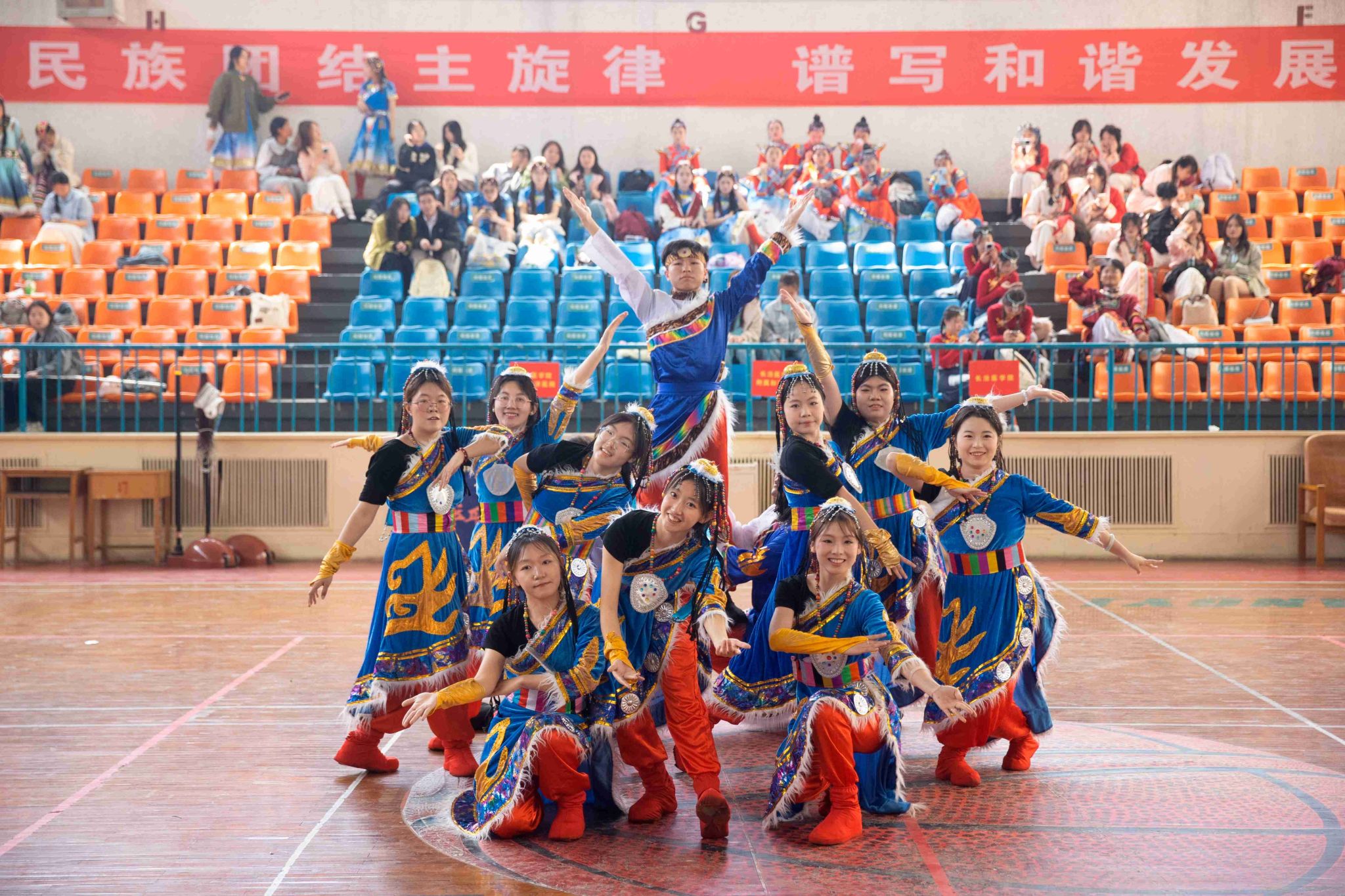 民族健身操是我校民族團結(jié)進步創(chuàng)建工作的生動載體,為深入貫徹落實習(xí)近平總書記關(guān)于加強和改進民族工作的重要思想,以鑄牢中華民族共同體意識為主線,增進各民族學(xué)生交往交流交融,生動展現(xiàn)當代大學(xué)生團結(jié)奮進、朝氣蓬勃的精神風貌,4月19日,由黨委統(tǒng)戰(zhàn)部主辦、公共體育教學(xué)部承辦的長治醫(yī)學(xué)院第五屆民族健身操大賽在文體中心開賽。來自全校17個院系的26支參賽隊伍以民族健身操為媒,將多彩民族文化融入動感韻律之中,為師生帶來一場民族文化與運動之美交相輝映的視聽盛宴。校黨委書記王金勝,長治市委統(tǒng)戰(zhàn)部副部長、民宗局局長趙百勝,長治市委統(tǒng)戰(zhàn)部民宗科科長張勇蒞臨活動現(xiàn)場,共同見證各民族青年學(xué)子在體育競技中增進團結(jié)、深化交流的精彩時刻。