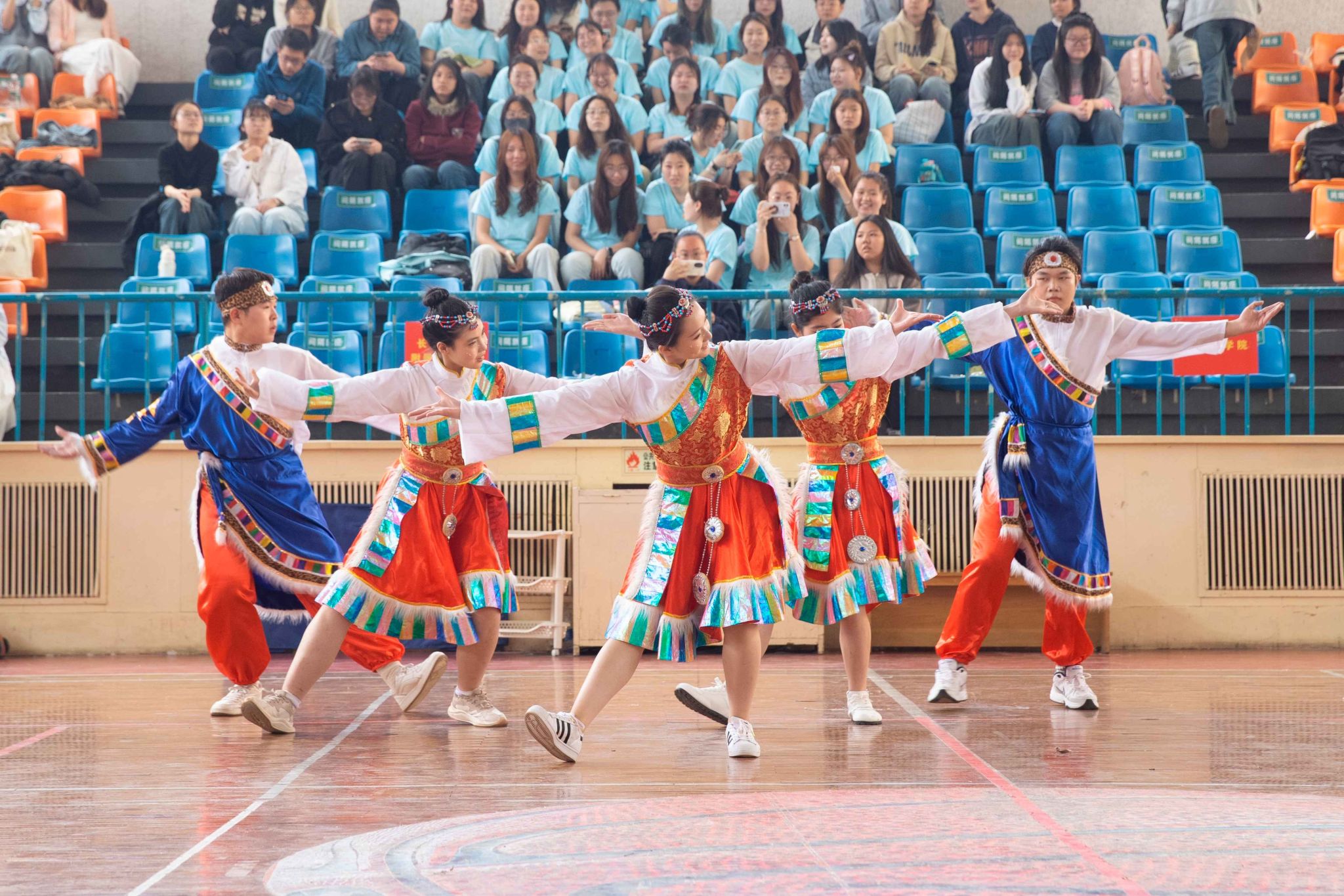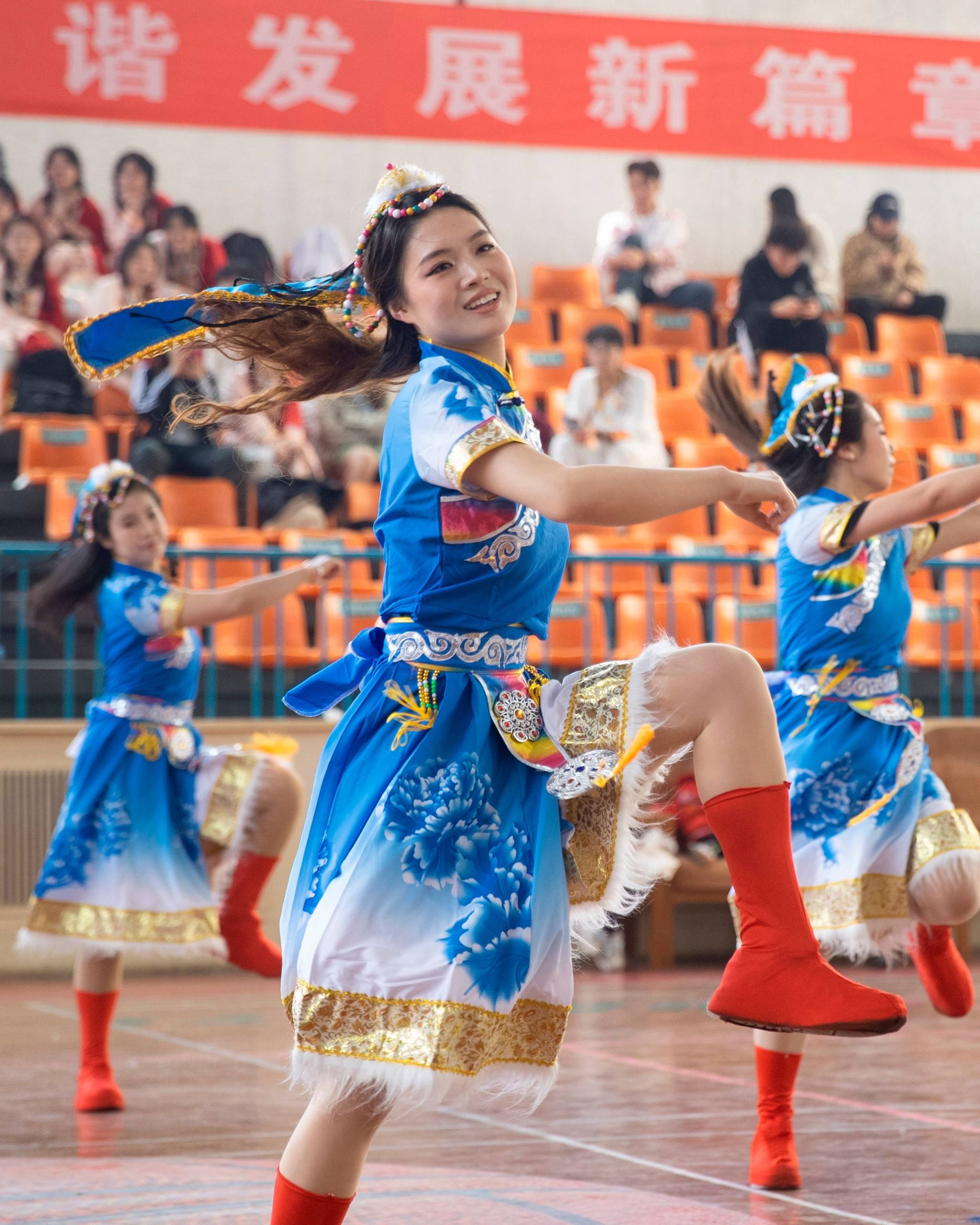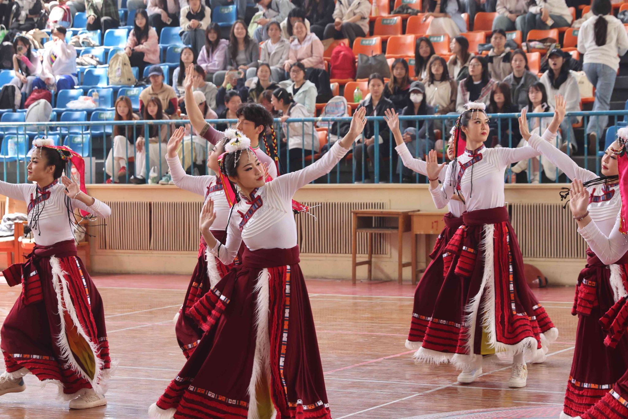 閉幕式上,王金勝代表學(xué)校黨委向在大賽中取得優(yōu)異成績的參賽隊伍表示熱烈祝賀。他指出,本次大賽將民族傳統(tǒng)文化與現(xiàn)代體育美育理念深度融合,不僅是一場技藝比拼,更是一堂生動的思政課。參賽選手以舞蹈為媒介增進理解,以協(xié)作精神促進融合,不僅詮釋了“美美與共,天下大同”的深刻內(nèi)涵,同時也讓 “三個離不開”思想深深扎根心間,讓“五個認同”在青春的碰撞中愈發(fā)堅定,充分體現(xiàn)了新時代青年“請黨放心,強國有我”的青春擔當。他寄語同學(xué)們,要將賽場上的團結(jié)精神轉(zhuǎn)化為奮進力量,做中華優(yōu)秀傳統(tǒng)文化的傳承者、創(chuàng)新者和傳播者,努力成長為德才兼?zhèn)洹⑷姘l(fā)展的社會主義建設(shè)者和接班人,為實現(xiàn)中華民族偉大復(fù)興貢獻青春力量。