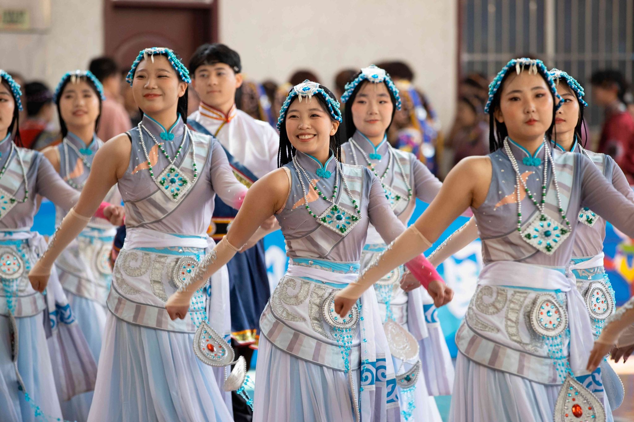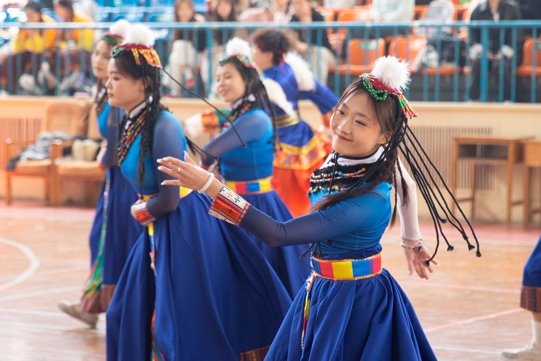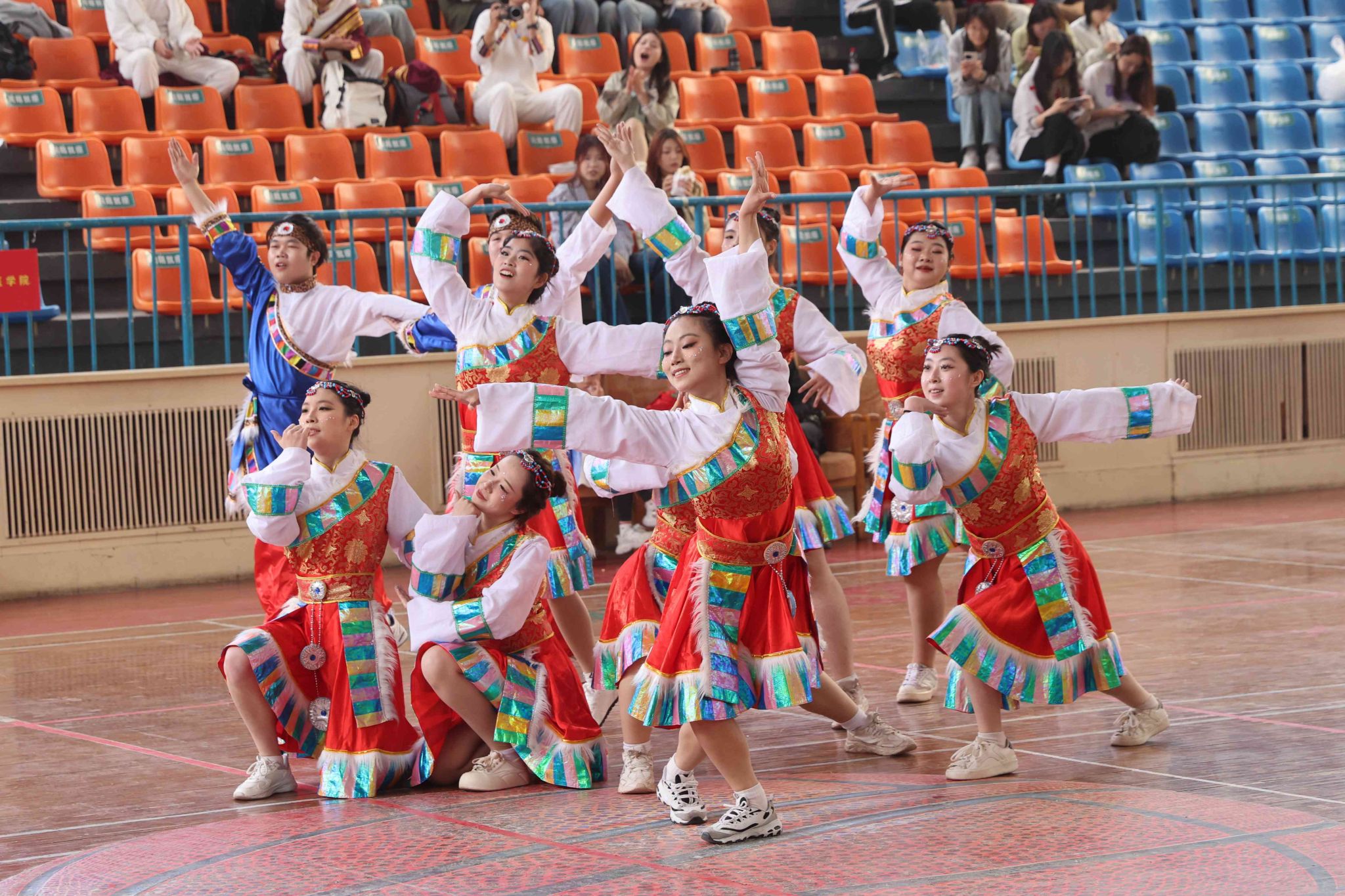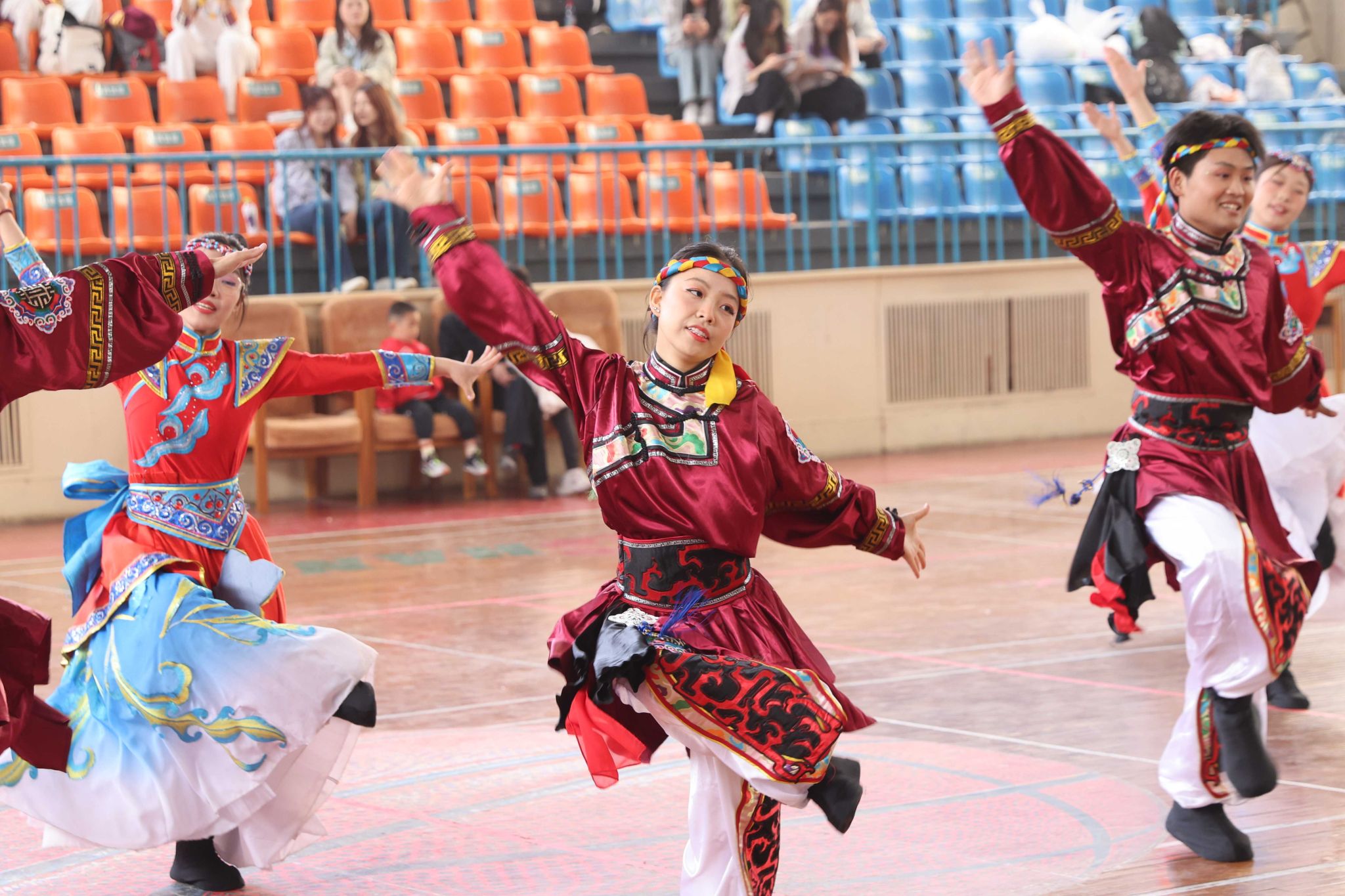 伴隨著悠揚旋律,各參賽隊伍身著絢麗多彩的民族服飾驚艷亮相。音樂節(jié)奏張弛有度,時而如潺潺清泉舒緩流淌,時而似激昂戰(zhàn)鼓振聾發(fā)聵,選手們以整齊劃一的動作、別出心裁的編排,將力量與柔美完美交融,在舞臺上盡情展現(xiàn)民族文化的獨特魅力,一次次將比賽氛圍推向高潮。