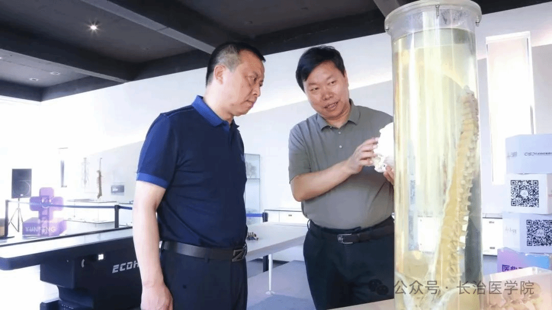 校院雙方重點圍繞實踐教學(xué)基地建設(shè)、康復(fù)醫(yī)學(xué)人才培養(yǎng)、產(chǎn)學(xué)研協(xié)同一體化及畢業(yè)生就業(yè)等進行深入交流。王旭實地考察了健康管理中心、遠程會診中心和影像診斷中心,詳細了解了設(shè)備配置、服務(wù)流程等。在生命科學(xué)館,徐云峰詳細介紹了基于打造“臨床需求—技術(shù)研發(fā)—教育應(yīng)用”三位一體的沉浸式醫(yī)學(xué)教學(xué)實踐基地、健康科普基地和綜合性醫(yī)學(xué)教育平臺的建設(shè)思路,及館內(nèi)先進的數(shù)字解剖臺、人體標(biāo)本、VR/AR、人文雕塑、生命樹等設(shè)備設(shè)施。王旭肯定了展館對醫(yī)院發(fā)展、人才培養(yǎng)、學(xué)術(shù)交流起到的積極作用,對展館的綜合性、實效性和創(chuàng)新性特色給予高度評價。