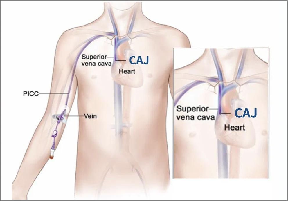 而3CG 磁導航PICC置管技術是集“電磁導航技術”、“超聲影像引導”及“腔內(nèi)心電圖定位”三位一體的PICC置管高端技術,操作者可通過超聲影像屏幕實時查看導管在血管內(nèi)的路徑、及時調(diào)整位置,并在心電信號輔助下,將導管尖端精準送達最佳位置——上腔靜脈與右心房交界處(CAJ)。