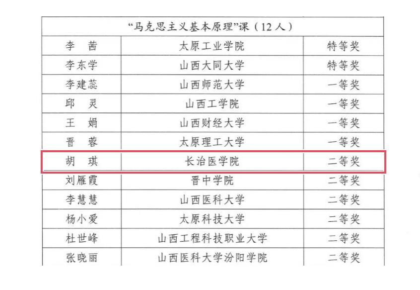 近日,山西省教育廳公布《第二屆全省高校思想政治理論課教學(xué)展示活動獲獎教師名單》(晉教政函〔2025〕17 號),我校馬克思主義學(xué)院教師胡琪在 “馬克思主義基本原理” 課程教學(xué)展示中表現(xiàn)優(yōu)異,榮獲二等獎。
