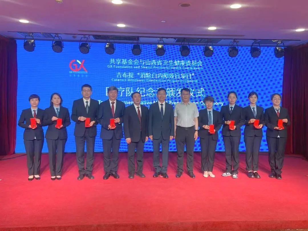 6月6日,香港共享基金會(huì)與山西省衛(wèi)生健康委員會(huì)在山西省太原市舉辦吉布提“消除白內(nèi)障致盲項(xiàng)目”醫(yī)療隊(duì)紀(jì)念章頒發(fā)儀式。全國(guó)政協(xié)副主席、香港共享基金會(huì)主席梁振英向39位山西援外醫(yī)療隊(duì)隊(duì)員頒發(fā)紀(jì)念章。省委書(shū)記唐登杰,省委副書(shū)記、代省長(zhǎng)盧東亮,省政協(xié)主席張春林出席。