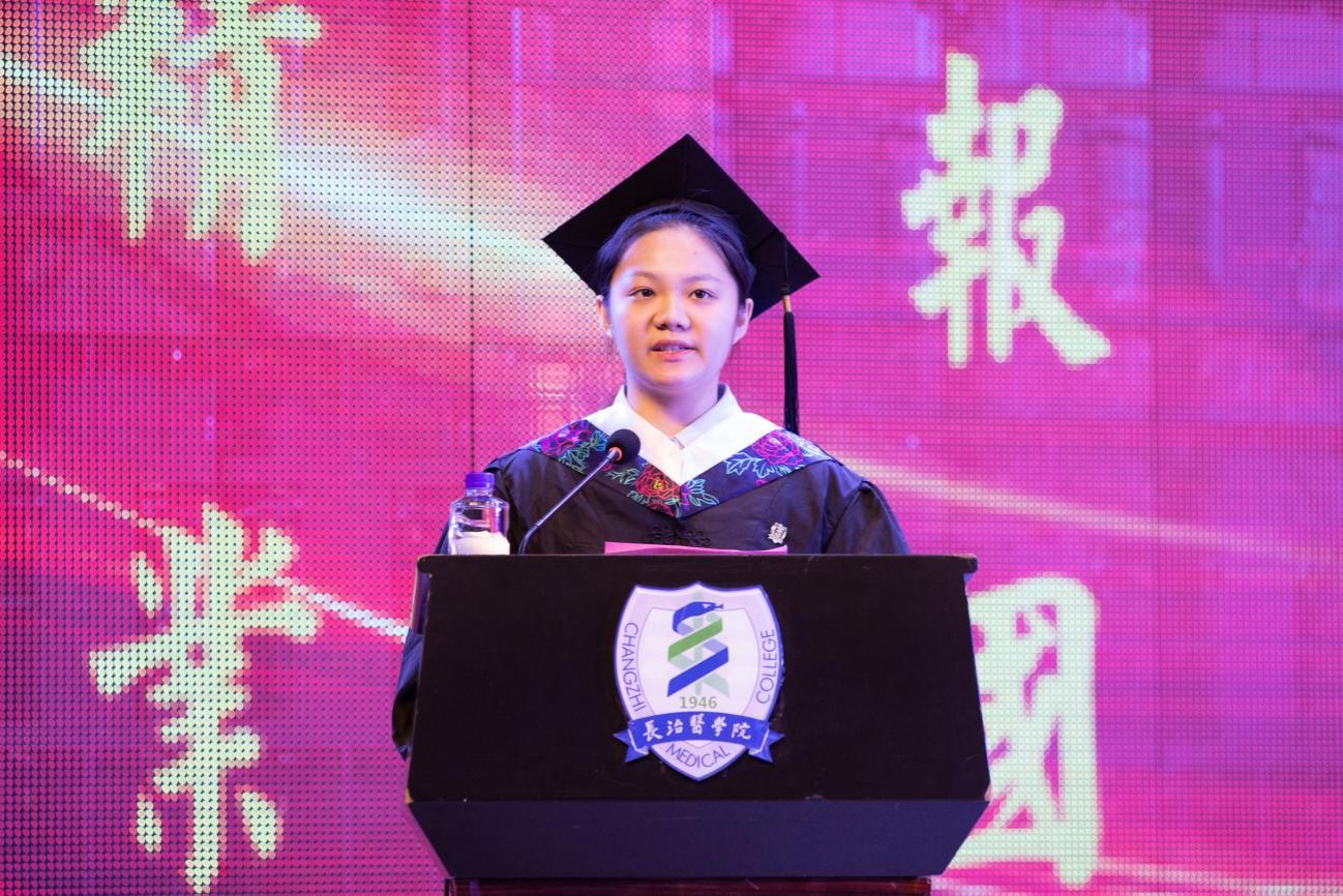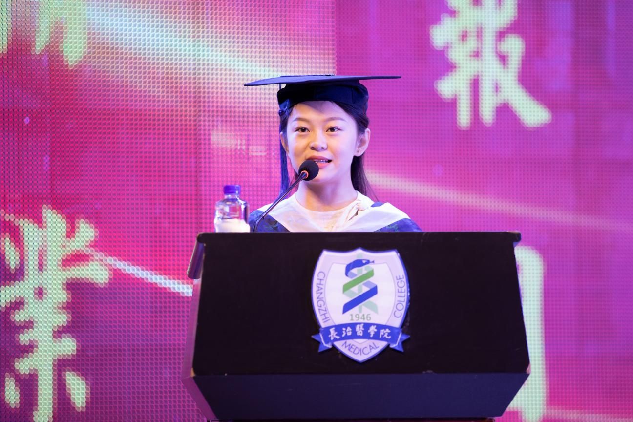 畢業(yè)生代表第一臨床學院研2201班晉晨雪、公共衛(wèi)生學院預(yù)2004班張冀葉分別發(fā)言,向母校與師長致以誠摯感恩,表示將銘記師長的諄諄教誨,堅守忠誠擔當?shù)恼纹犯窈蛧乐攧?wù)實的工作作風,在祖國和人民最需要的地方踐行醫(yī)者使命,為中國式現(xiàn)代化建設(shè)貢獻長醫(yī)學子的青春力量。