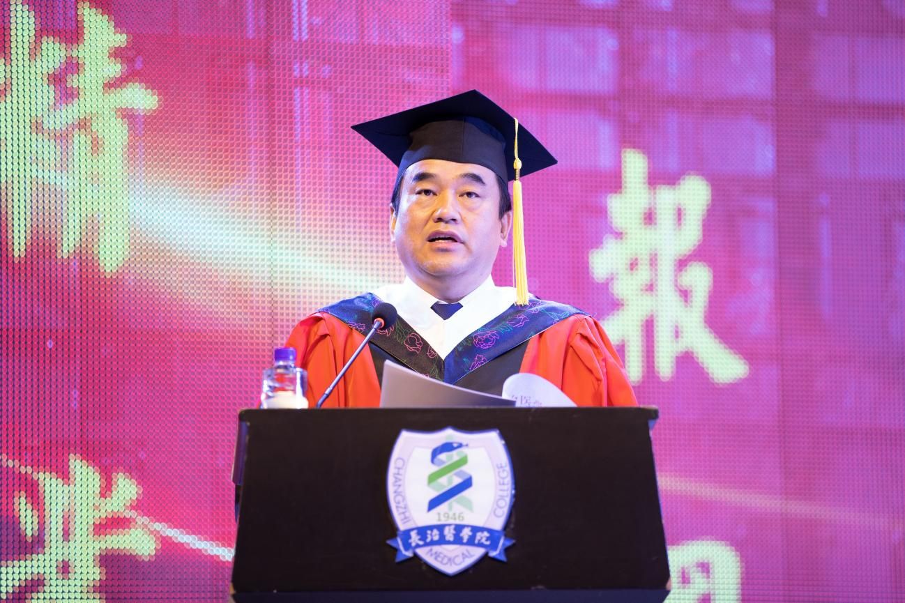 6月24日,長治醫(yī)學院2025屆學生畢業(yè)典禮暨學位授予儀式在學校科學會堂舉行。全體校領(lǐng)導(dǎo)、各二級院系(部)黨政領(lǐng)導(dǎo)、全體輔導(dǎo)員、應(yīng)邀專程返回母校的優(yōu)秀校友代表以及學生家長,共同見證3532名畢業(yè)生滿載收獲、啟航人生新征程的重要時刻。黨委書記王金勝主持典禮。