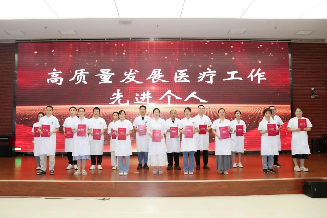 隨后,出席會(huì)議的黨政領(lǐng)導(dǎo)為“高質(zhì)量發(fā)展醫(yī)療工作先進(jìn)個(gè)人”“優(yōu)秀質(zhì)控醫(yī)師”“優(yōu)秀感控醫(yī)師”等16個(gè)獎(jiǎng)項(xiàng)的獲獎(jiǎng)代表逐一頒發(fā)證書,臺(tái)下掌聲雷動(dòng),既是對(duì)獲獎(jiǎng)?wù)叩目隙?,更激發(fā)了全體醫(yī)務(wù)工作者 “比學(xué)趕超” 的熱情。