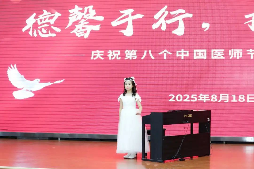 隨后,文藝表演輪番登場(chǎng):和平鴿合唱團(tuán)獻(xiàn)唱《人民醫(yī)師之歌》,激昂旋律唱出對(duì)醫(yī)師職業(yè)的敬仰;職工子女帶來鋼琴獨(dú)奏《慶翻身》《如愿》,悠揚(yáng)琴聲傳遞著對(duì)醫(yī)者的節(jié)日祝福。
