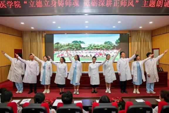 9月9日,“立德立身鑄師魂,砥礪深耕正師風(fēng)”師德師風(fēng)朗誦大賽在濟(jì)世廳舉行。參賽教師結(jié)合自身的育人經(jīng)歷,通過集體誦讀形式,以聲傳情、以文育德。經(jīng)過激烈角逐,第一臨床學(xué)院黨委獲得一等獎(jiǎng);第二臨床學(xué)院黨委、醫(yī)學(xué)影像學(xué)系黨總支獲得二等獎(jiǎng);基礎(chǔ)醫(yī)學(xué)院黨總支、醫(yī)學(xué)人文與音樂治療系黨總支、口腔醫(yī)學(xué)系黨總支、康復(fù)醫(yī)學(xué)系黨總支、精神衛(wèi)生系黨總支獲得三等獎(jiǎng);基礎(chǔ)醫(yī)學(xué)院黨總支獲得創(chuàng)作設(shè)計(jì)獎(jiǎng)。此次大賽集中展示了我校教師良好的精神風(fēng)貌,切實(shí)提升了廣大教師的職業(yè)榮譽(yù)感和使命感。