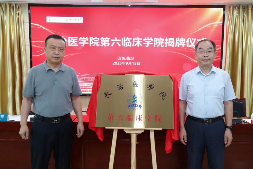 王旭與喬飛鴻共同為“長(zhǎng)治醫(yī)學(xué)院第六臨床學(xué)院”揭牌。