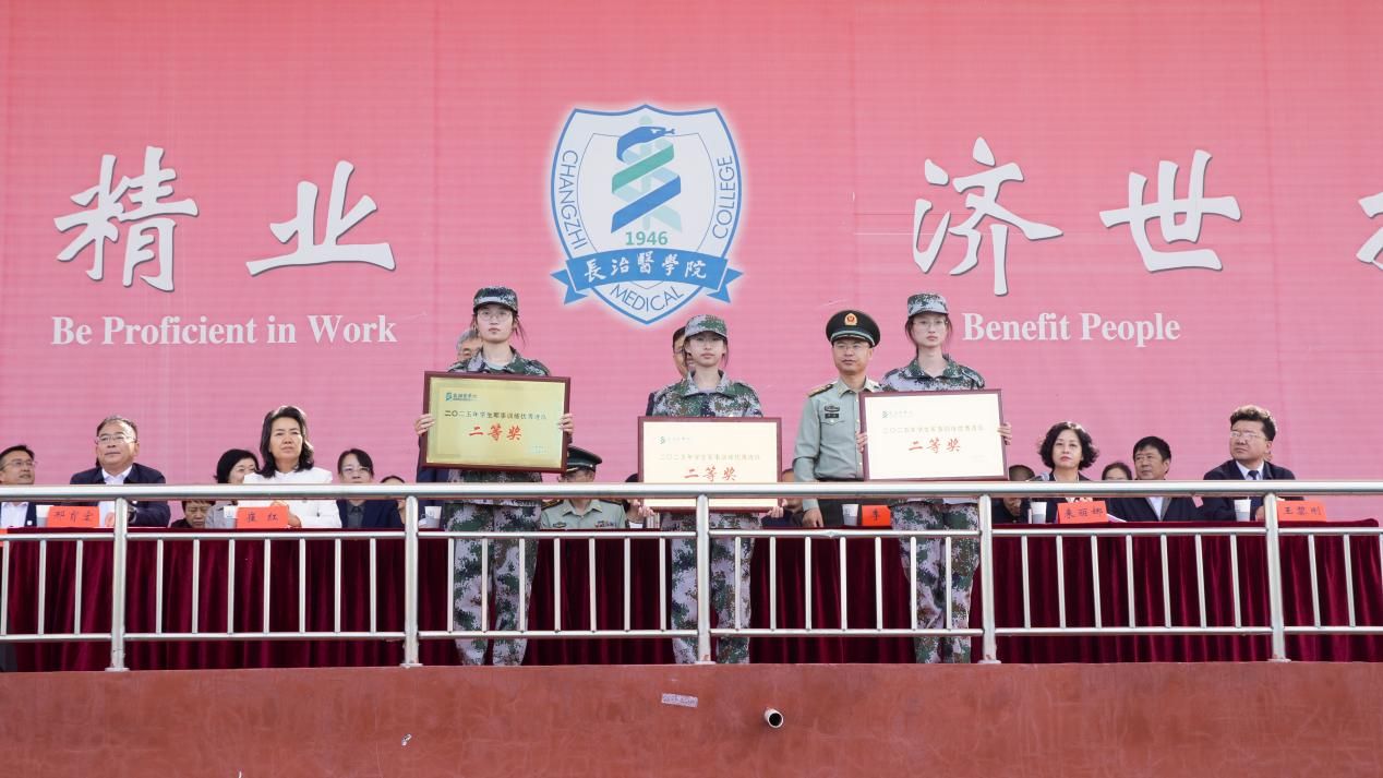 匯演結(jié)束后,來麗娜宣讀了軍訓(xùn)表彰決定,對表現(xiàn)突出的9個“優(yōu)秀連隊”、2個“標(biāo)兵方隊”、53名“軍訓(xùn)標(biāo)兵”以及56名優(yōu)秀承訓(xùn)教官進行了表彰。校領(lǐng)導(dǎo)依次為獲獎集體和個人頒獎。
