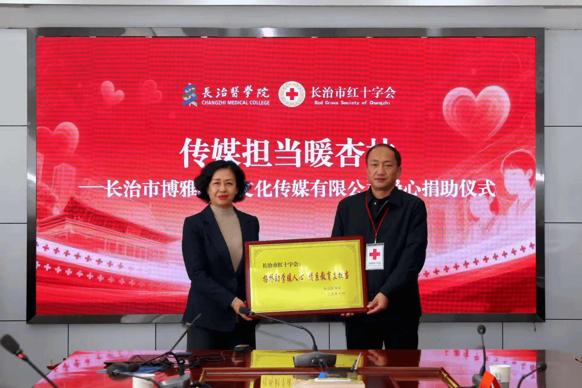 10月28日上午,“傳媒擔當暖杏林”愛心捐助儀式在我校舉行,長治市博雅時代文化傳媒有限公司通過長治市紅十字會向我校捐資助學,用于獎勵品學兼優(yōu)的貧困大學生。博雅時代總經(jīng)理暴易航,長治市紅十字會黨組成員、四級調(diào)研員高彥民,校黨委常委、副校長來麗娜出席儀式,學工部及各院系師生代表參加,儀式由學工部副部長李永平主持。