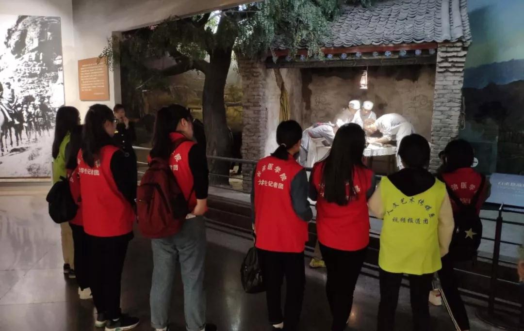在紀(jì)念館,大家瞻仰了偉大的國(guó)際主義戰(zhàn)士白求恩,銘記他為中國(guó)抗戰(zhàn)勝利以身殉職的感人事跡;回顧了白求恩國(guó)際和平醫(yī)院醫(yī)護(hù)人員為支援前線英勇奮斗的光輝歷程。大家面對(duì)“太行精神 光耀千秋”的巨型浮雕,重溫了入團(tuán)誓詞。