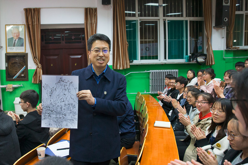 見面會(huì)后,輔導(dǎo)員黃曉寧老師主持召開主題班會(huì)。同學(xué)們分享了觀看《太行母親》秧歌劇的深切感受,并結(jié)合在長醫(yī)的求學(xué)經(jīng)歷,暢談“心中的太行精神”。1813班同學(xué)還向李華榮書記贈(zèng)送了親手繪制的《在太行山上》素描鉛筆畫。