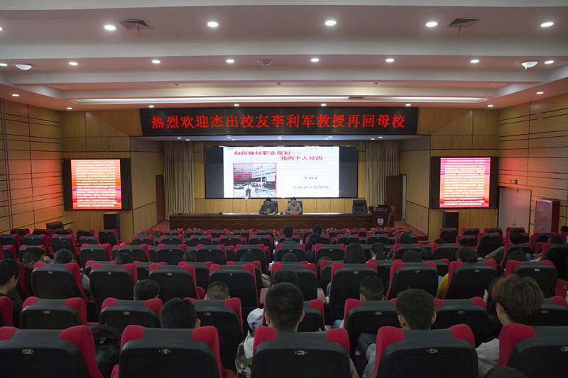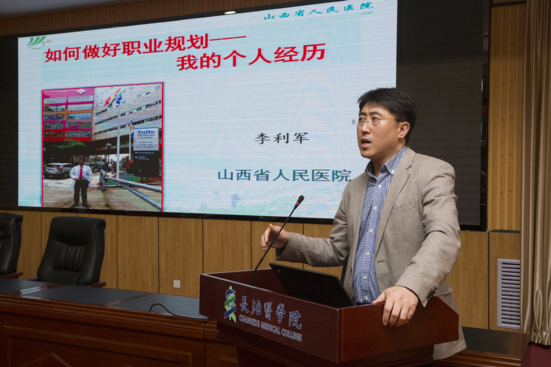 4月24日下午,我?!敖艹鲂S逊敌>枵n”活動邀請到了山西省人民醫(yī)院醫(yī)改辦副主任、碩士研究生導師、1995級校友李利軍教授,在臨床技能中心學術報告廳作了題為“如何做好職業(yè)規(guī)劃”的專題講座。講座由校友辦副主任常澤主持,校友辦全體工作人員、李利軍的在校同學以及師生代表200余人聆聽講座。