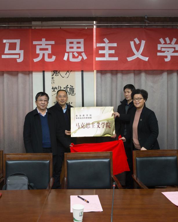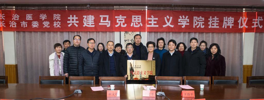 為貫徹落實全國思政工作會議和全國教育工作大會精神,推進習近平新時代中國特色社會主義思想“進教材、進課堂、進頭腦”,1月24日,長治醫(yī)學院與中共長治市委黨校共建馬克思主義學院掛牌儀式在我校舉行。長治市委黨校常務副校長李建平、教務處處長崔文雄、辦公室主任王治平出席掛牌儀式,我校校黨委副書記張芳萍、副校長宋曉亮出席掛牌儀式。掛牌儀式由宋曉亮主持。