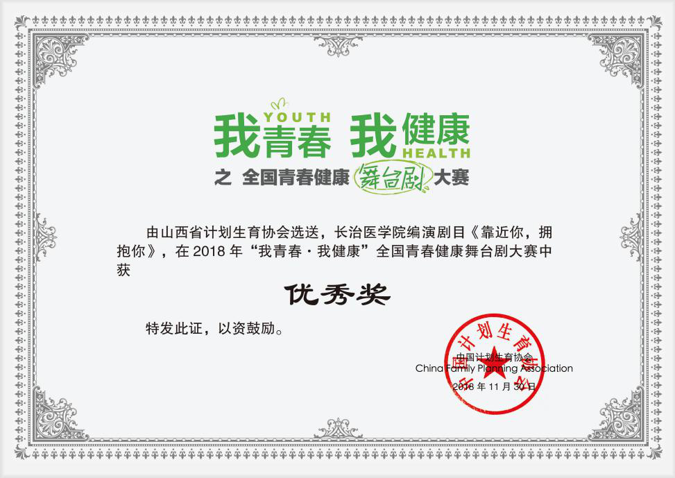 近日,從中國(guó)紅十字會(huì)總會(huì)、中國(guó)計(jì)劃生育協(xié)會(huì)、中國(guó)性病艾滋病防治協(xié)會(huì)聯(lián)合下發(fā)的《關(guān)于2018年全國(guó)青春健康舞臺(tái)劇大賽總決賽的通知》獲悉,我校原創(chuàng)舞臺(tái)劇目《靠近你,擁抱你》榮獲優(yōu)秀獎(jiǎng)。