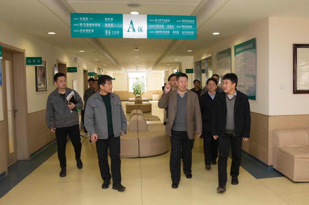 座談會后,鄭建中、宋曉亮、王金勝在清華機械廠潘裕林廠長、寧怡副廠長和清華醫(yī)院領(lǐng)導的陪同下,到醫(yī)院圖書室、門急診樓、健康體檢綜合樓、住院部深入各科室實地了解了整體運行情況。學校醫(yī)院管理處牛慶國等一起陪同調(diào)研。