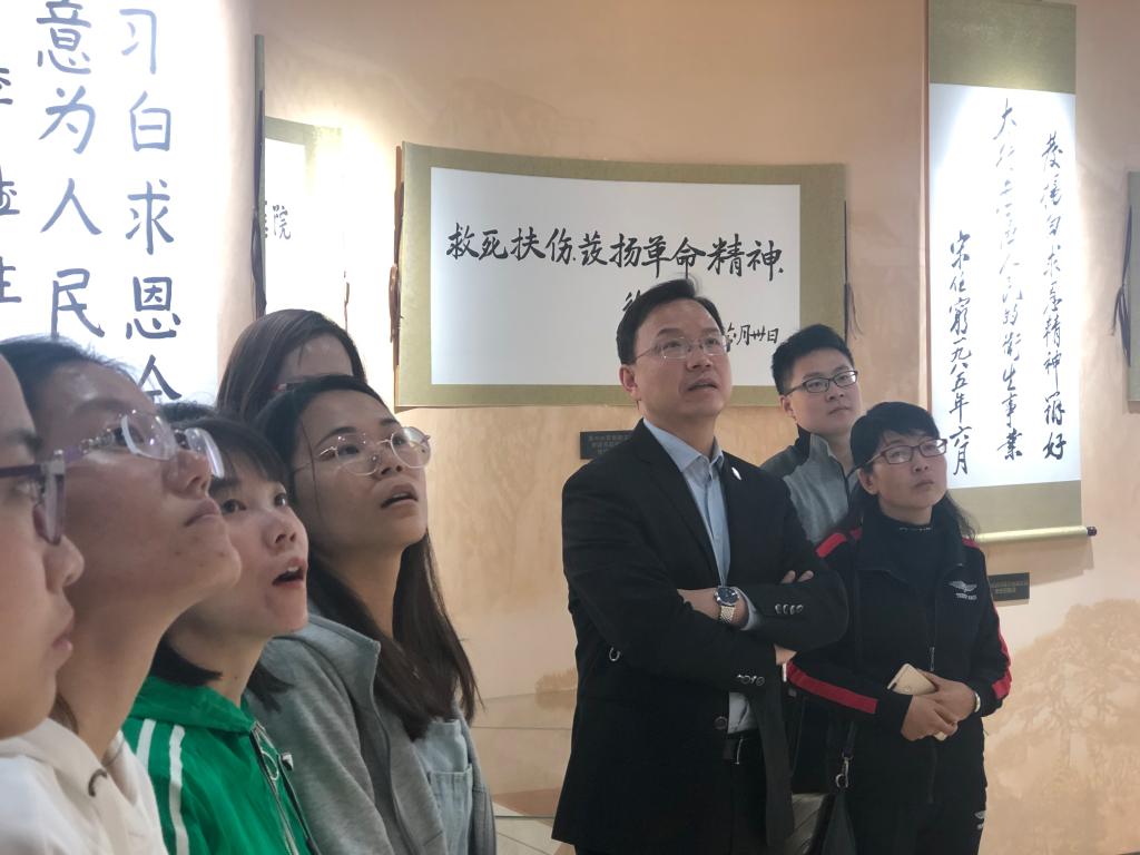 為更好地傳承紅色基因,弘揚(yáng)何穆精神,激發(fā)研究生“知校、愛校、榮校、興?!钡淖院栏?、榮譽(yù)感和責(zé)任感,5月10日下午,研究生黨總支組織2018級(jí)研究生參觀了我校附屬和平醫(yī)院院史館。王金勝副校長作為聯(lián)系班級(jí)領(lǐng)導(dǎo)參加了此次活動(dòng)。