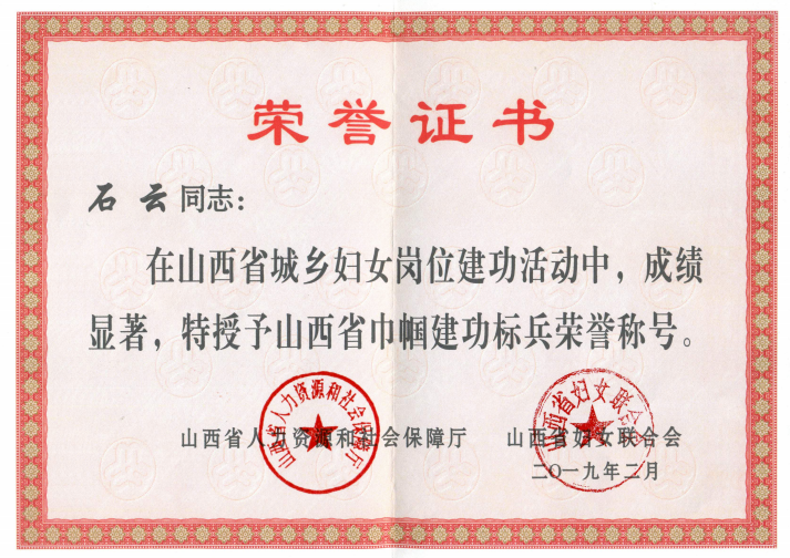 我校教師石云榮獲“山西省巾幗建功標(biāo)兵”榮譽(yù)稱號