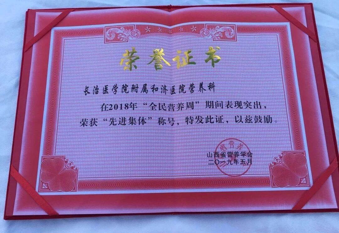 我校附屬和濟(jì)醫(yī)院營(yíng)養(yǎng)科被山西省營(yíng)養(yǎng)學(xué)會(huì)評(píng)為全民營(yíng)養(yǎng)周先進(jìn)集體