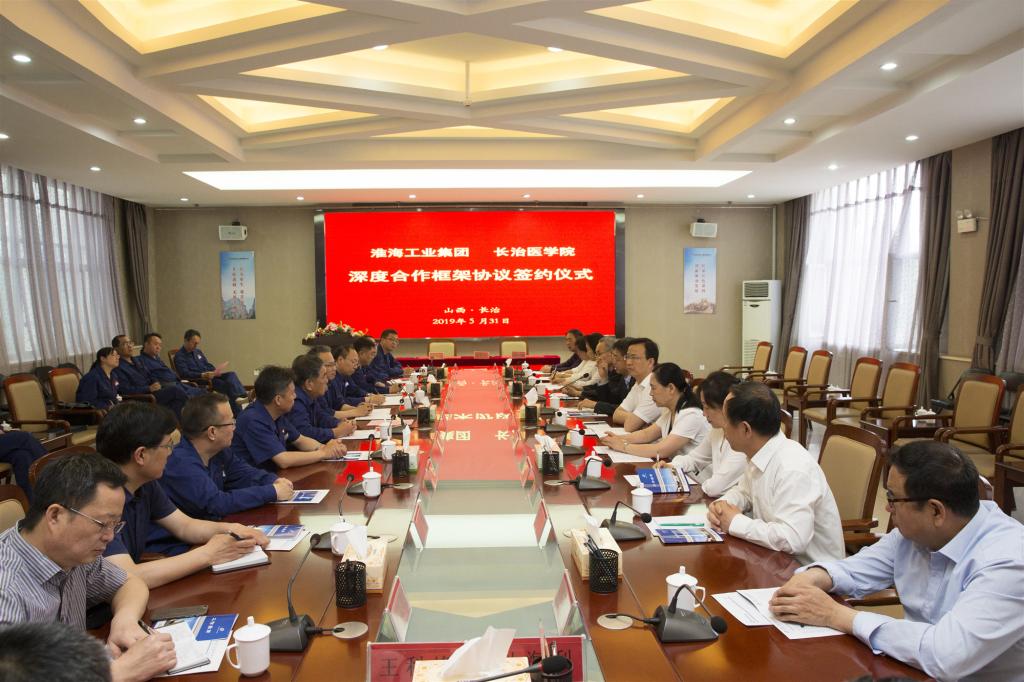 史慶書對參加簽約儀式的我校相關(guān)領(lǐng)導(dǎo)表示歡迎,向為此次深度合作付出辛勤勞動和工作的全體人員表示衷心的感謝。他指出,淮海工業(yè)集團和長治醫(yī)學(xué)院專業(yè)不同、目標(biāo)一致,淮海醫(yī)院、惠豐醫(yī)院整建制劃歸長治醫(yī)學(xué)院,是給兩所醫(yī)院找到了“好婆家”?;春9I(yè)集團與長治醫(yī)學(xué)院同根同源,都有紅色基因,具備合作基礎(chǔ),希望在長治醫(yī)學(xué)院強大技術(shù)背景、專業(yè)指導(dǎo)下,兩所醫(yī)院可以發(fā)展得更好,可以讓企業(yè)職工享受到更優(yōu)質(zhì)的醫(yī)療服務(wù)。