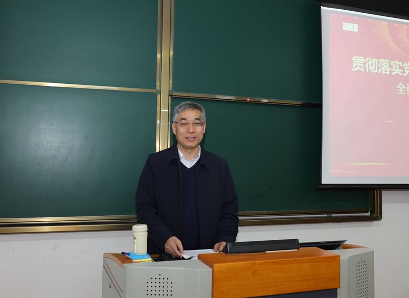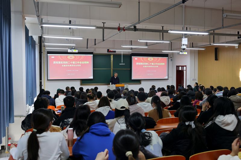為深入學(xué)習(xí)宣傳貫徹黨的二十屆三中全會精神,推動全會精神在我校落地生根,11月29日下午,校黨委副書記鄭金平教授以《貫徹落實黨的二十屆三中全會精神 全面深化教育綜合改革》為題,在潤智樓501教室為護理學(xué)院、公共衛(wèi)生與預(yù)防醫(yī)學(xué)系、精神衛(wèi)生系、康復(fù)醫(yī)學(xué)系的全體教師以及部分學(xué)生黨員、入黨積極分子作主題宣講。