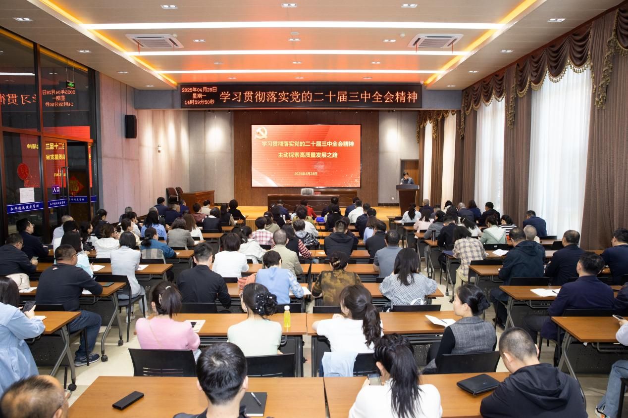 為深入學(xué)習(xí)貫徹黨的二十屆三中全會精神,推動學(xué)校及附屬醫(yī)院在新時(shí)代教育強(qiáng)國建設(shè)與健康中國戰(zhàn)略中勇?lián)姑?/span>4月28日下午,校黨委常委、副校長尚進(jìn)平在附屬和平醫(yī)院體檢中心會議室以《深入學(xué)習(xí)貫徹落實(shí)黨的二十屆三中全會精神 主動探索高質(zhì)量發(fā)展之路》為題進(jìn)行宣講。學(xué)校黨委(院長)辦公室、和平醫(yī)療集團(tuán)、醫(yī)學(xué)檢驗(yàn)系、醫(yī)學(xué)影像學(xué)系、人力資源部、國際合作與交流部、資產(chǎn)管理部、保衛(wèi)部、圖書館、檔案館、醫(yī)院管理部相關(guān)負(fù)責(zé)人及教師140余人參加。宣講會由醫(yī)學(xué)檢驗(yàn)系黨總支書記馬玉玲主持。