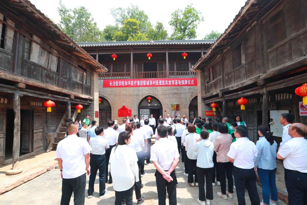 活動中還舉行了長治醫(yī)學院和平醫(yī)療集團醫(yī)德醫(yī)風教育基地揭牌儀式、創(chuàng)建黎城紅色醫(yī)療教育基地五周年座談會。組織和平醫(yī)療集團黨務工作者向?qū)掅稚礁锩⑿奂o念碑敬獻花圈,在黃崖洞紅色教育基地面對黨旗重溫入黨誓詞,表達了向英烈學習、為黨的事業(yè)奮斗終身的堅定決心。